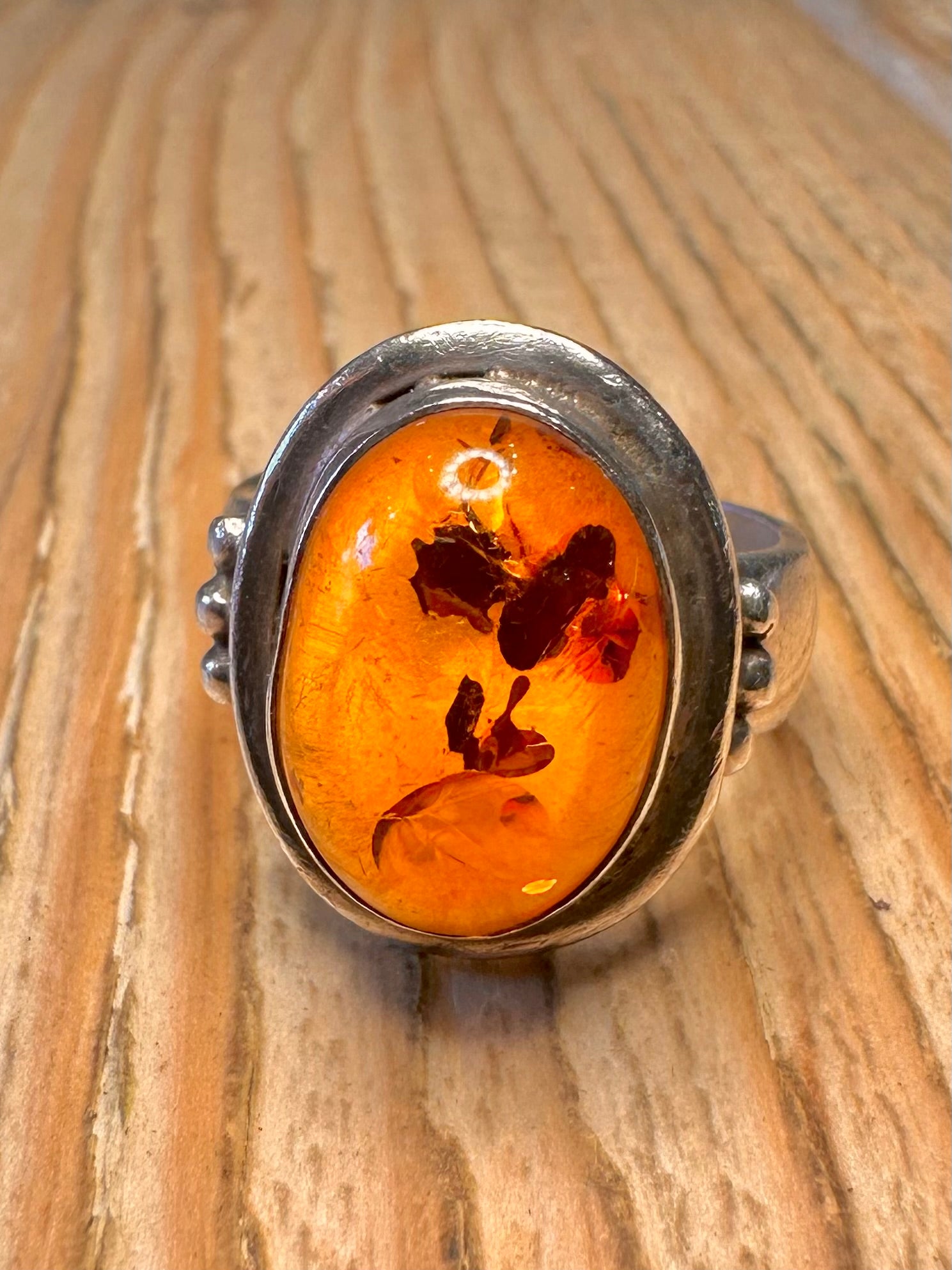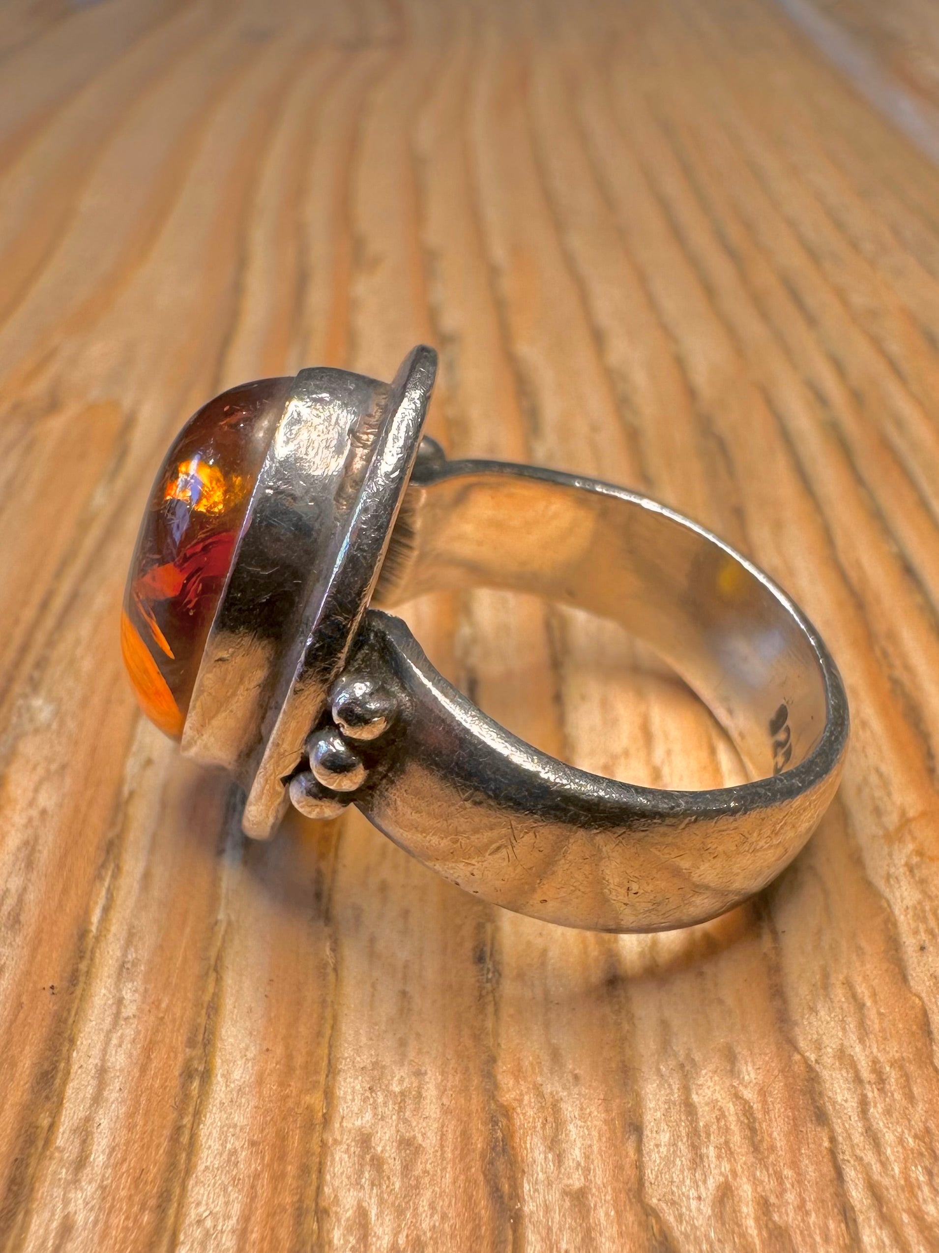 Vintage Oval Amber 925 Sterling Silver Size N1/2 Ring