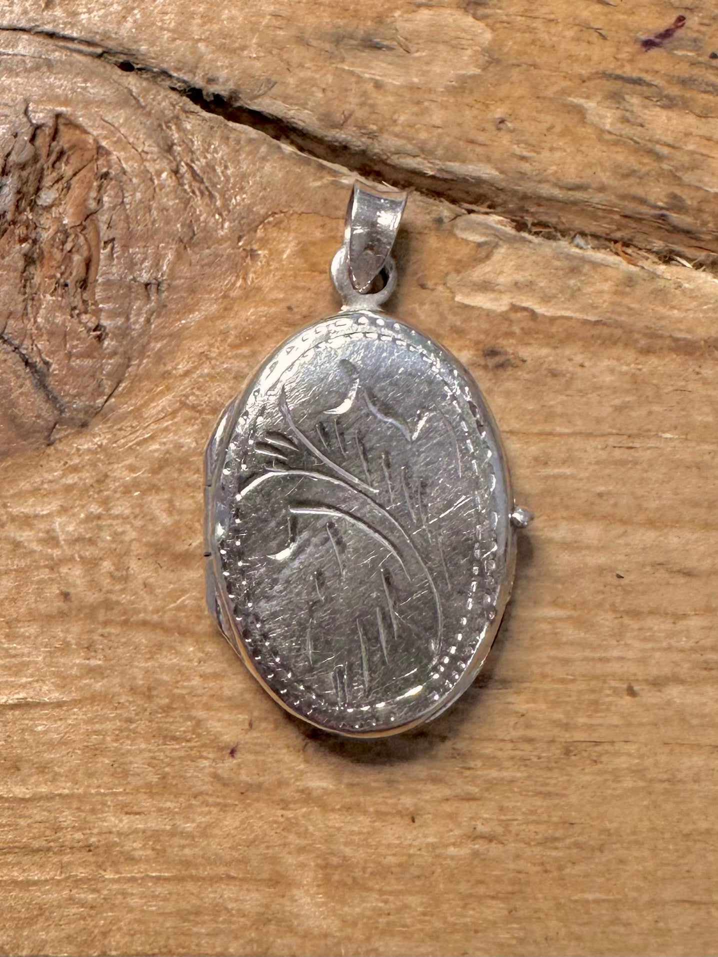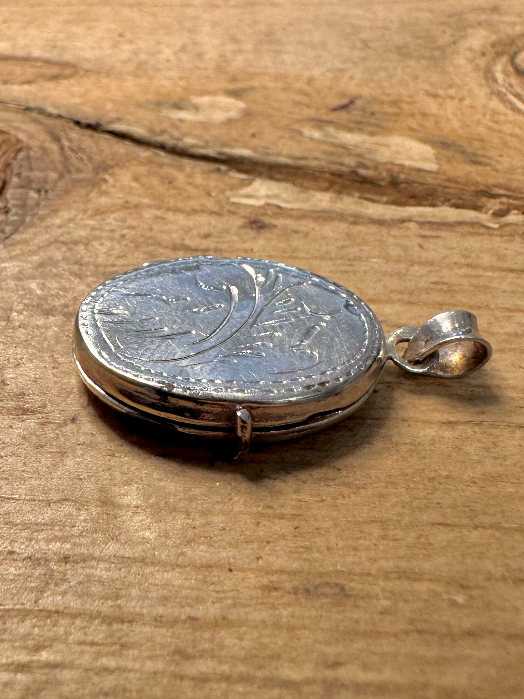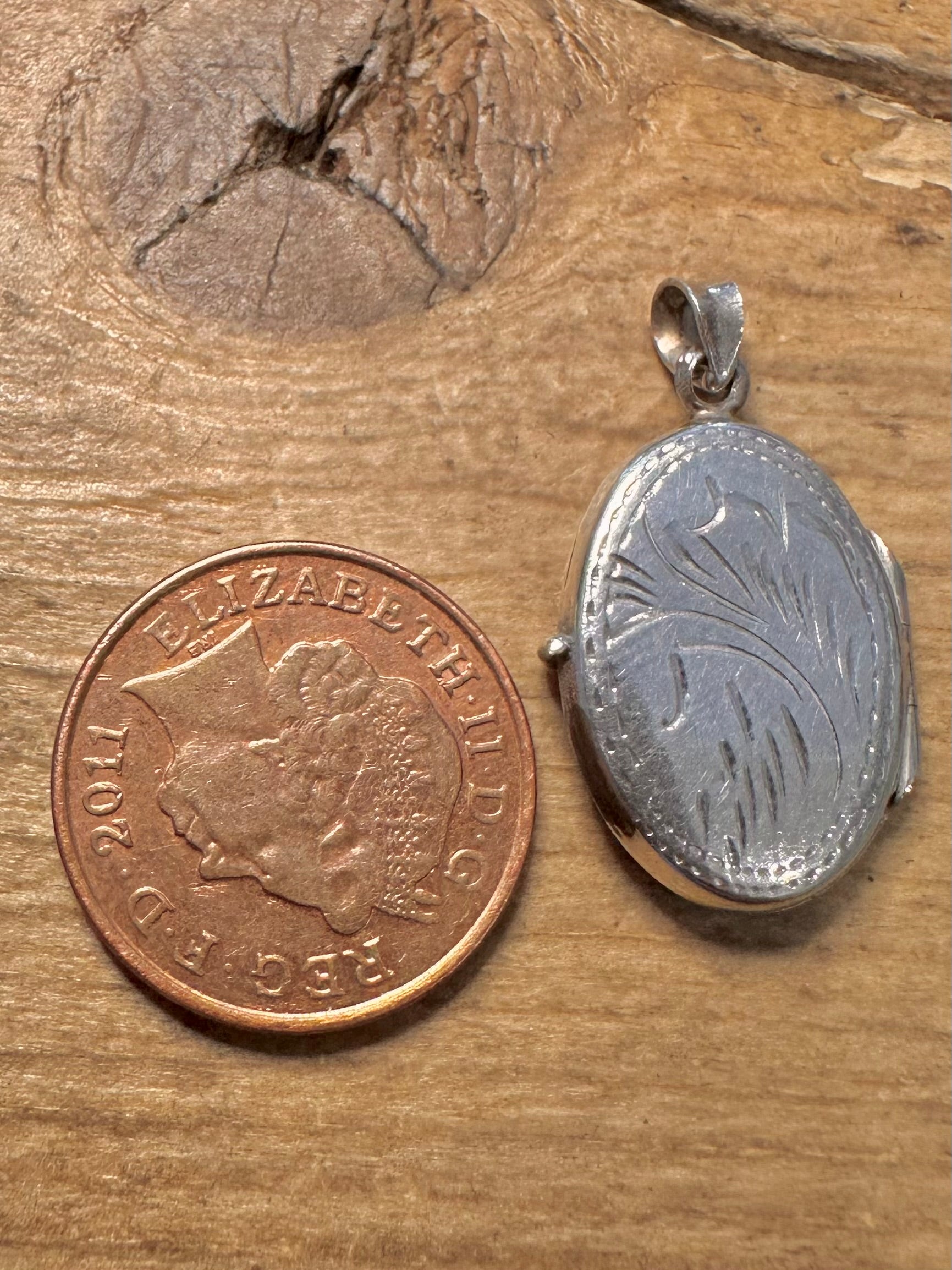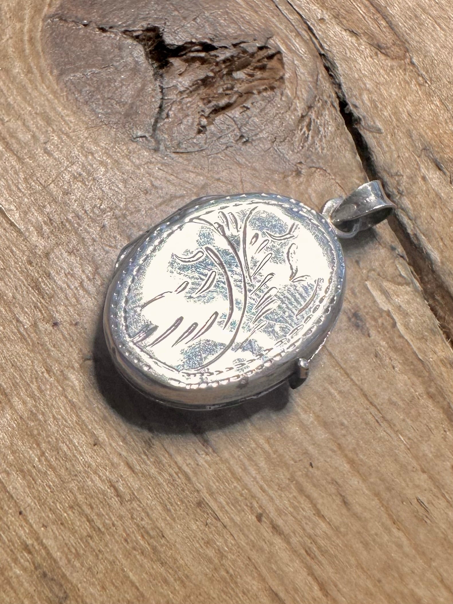 Vintage Oval Engraved 925 Silver Locket Pendant