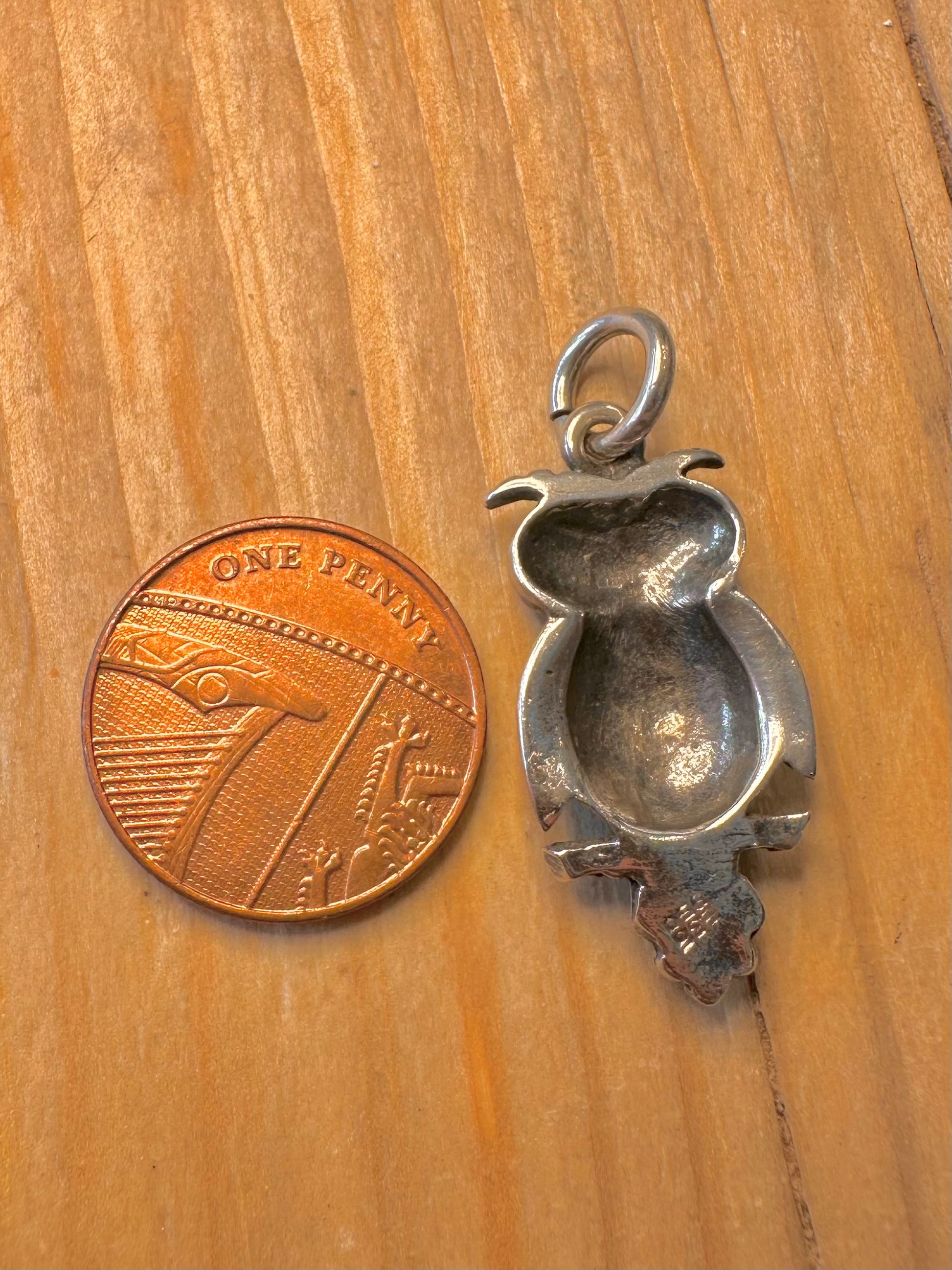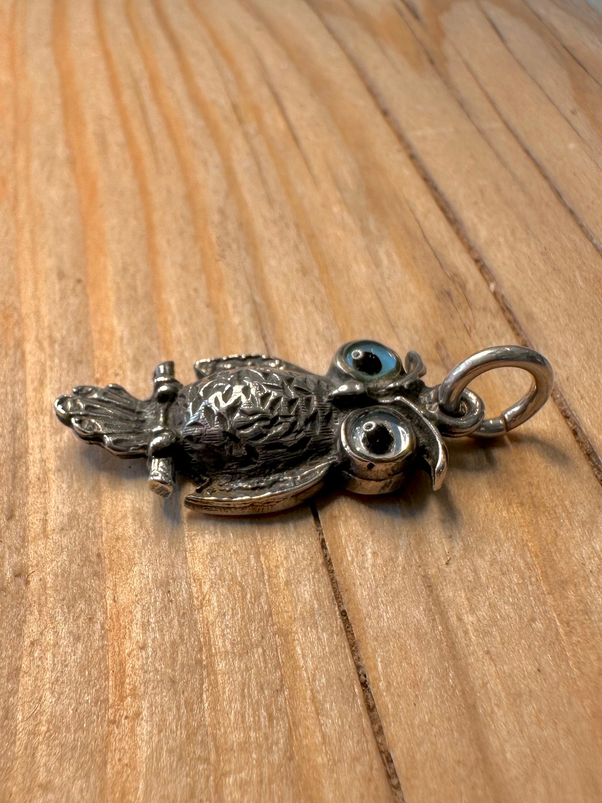 Vintage Owl Blue Eyes 925 Silver Pendant