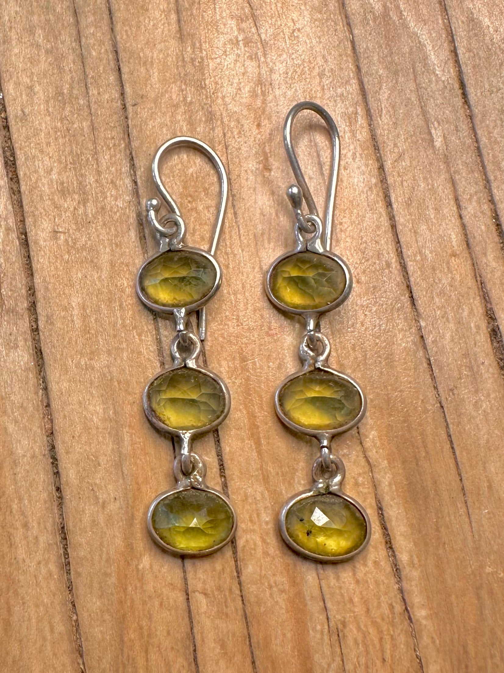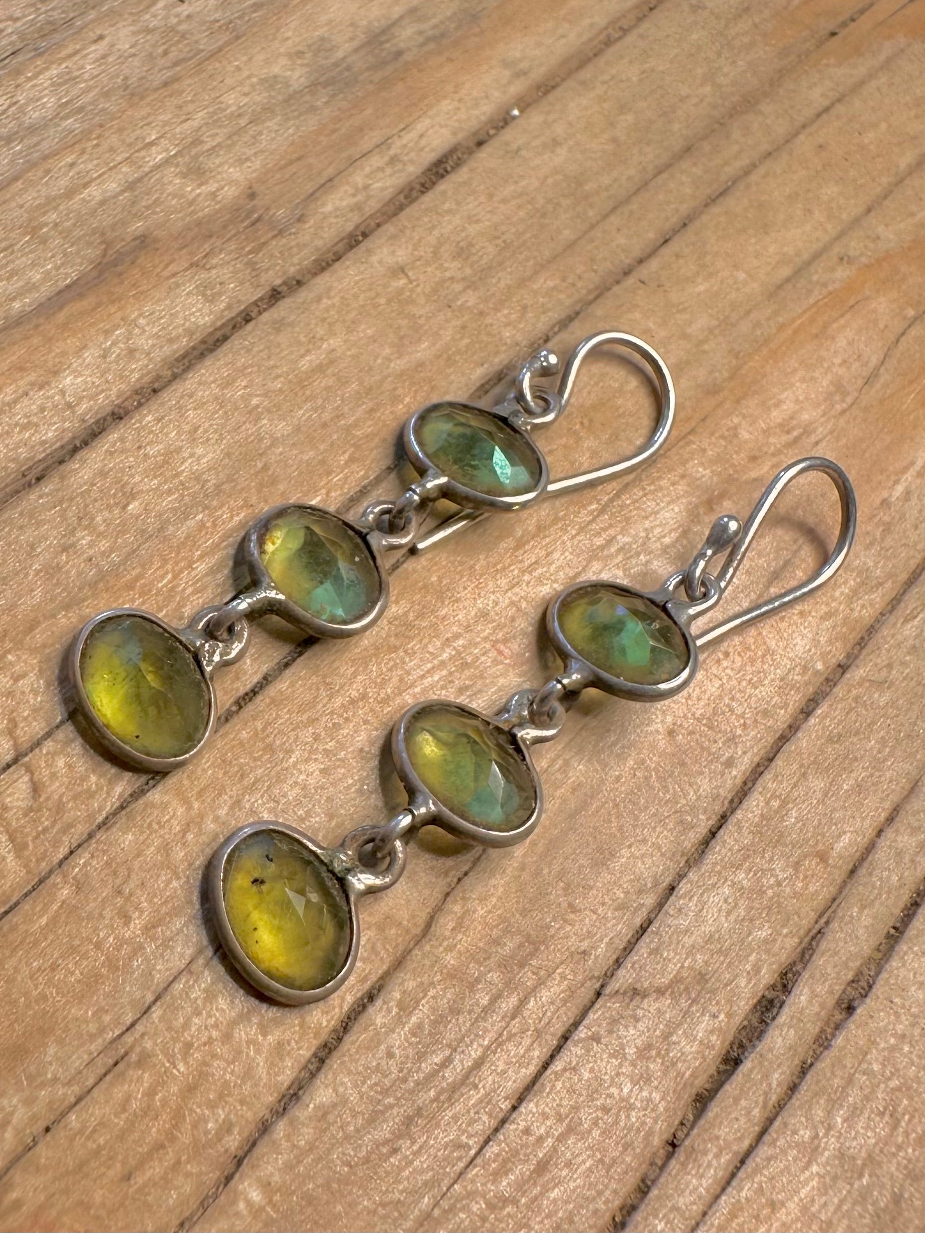 Vintage Peridot Dangle 925 Sterling Silver Earrings