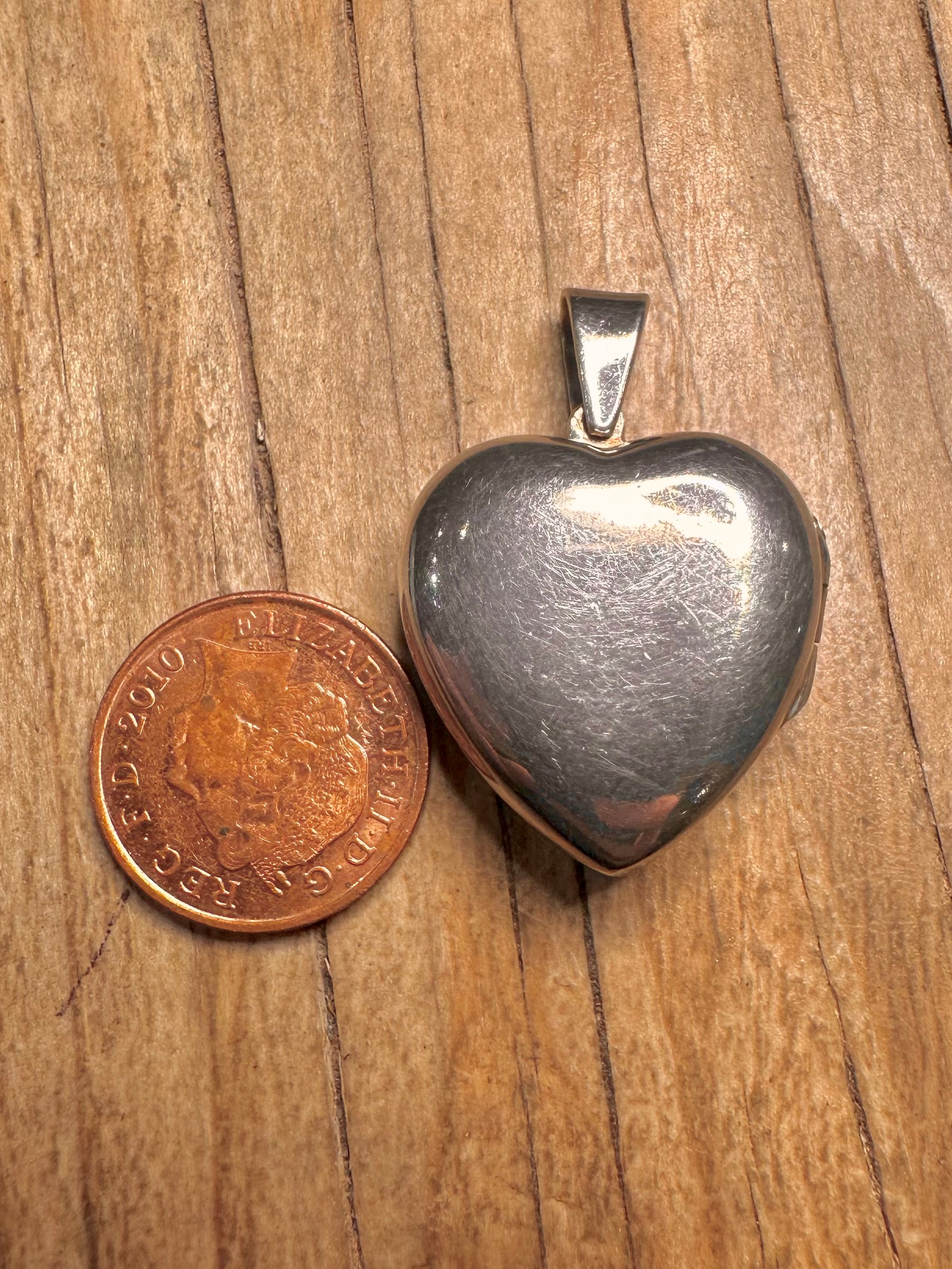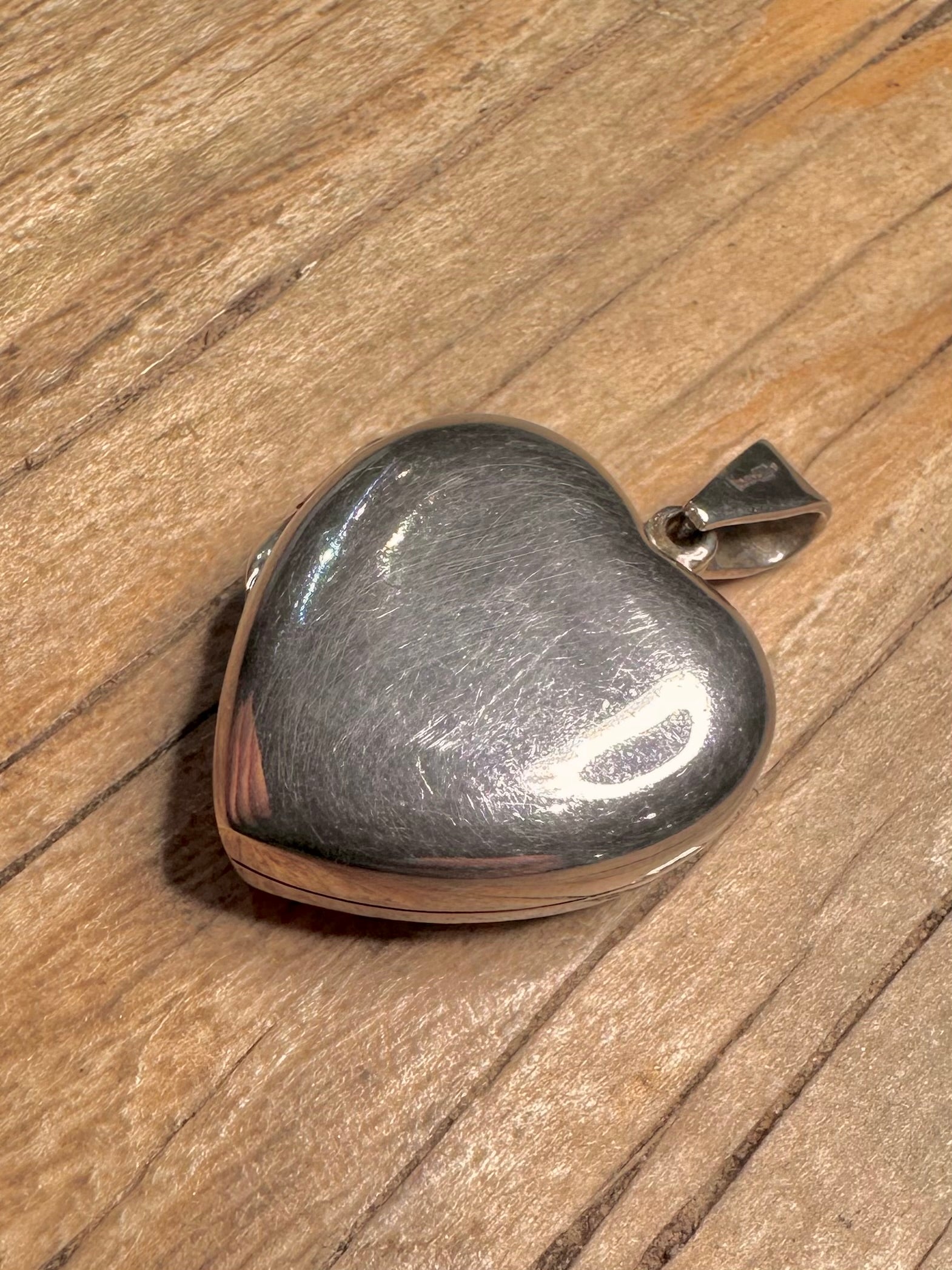 Vintage Plain Heavy Heart 925 Sterling Silver Locket Pendant