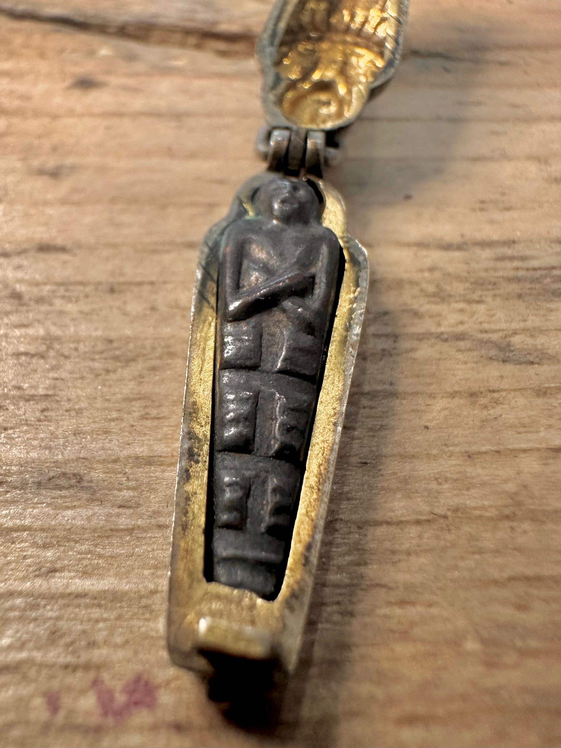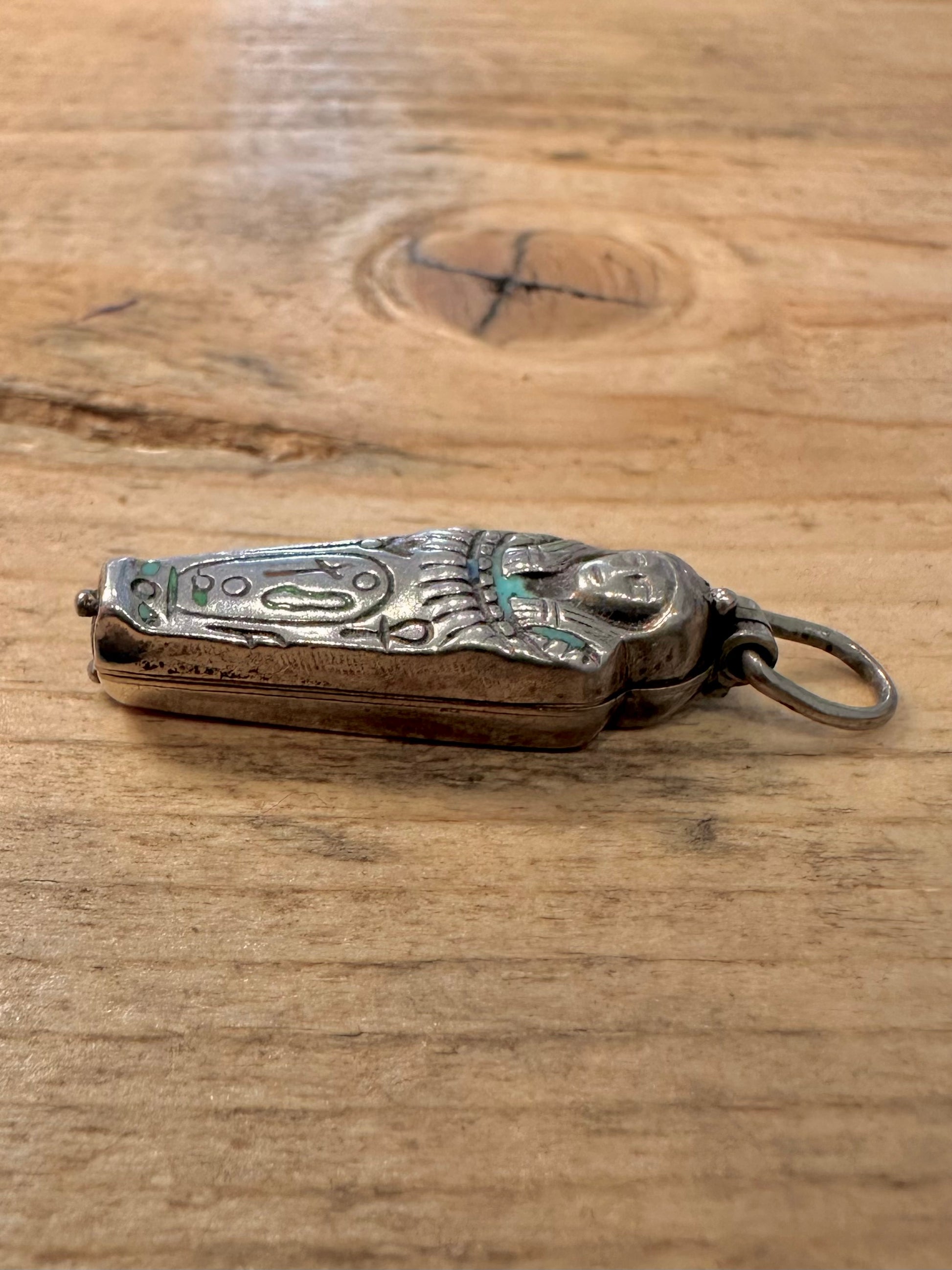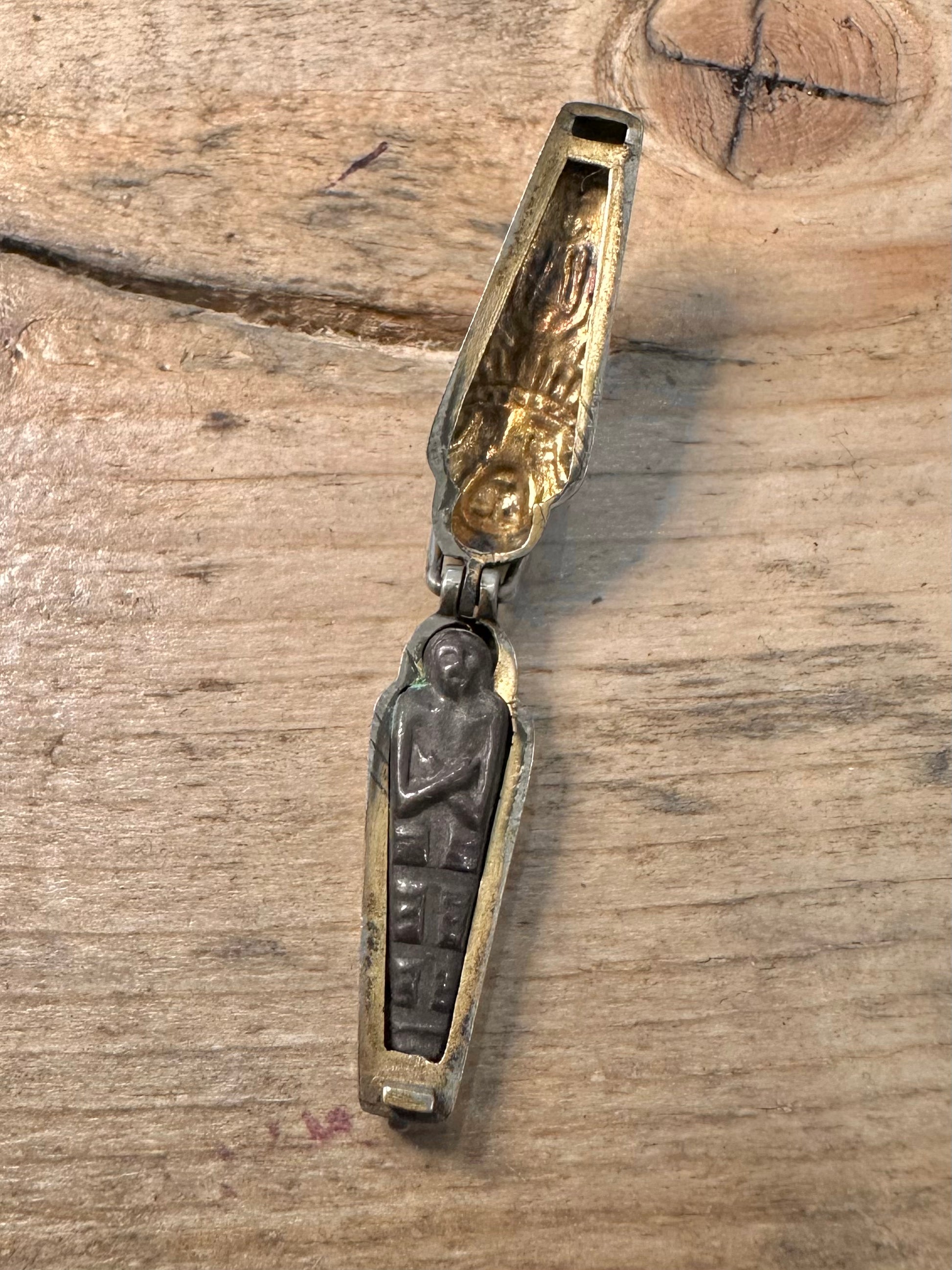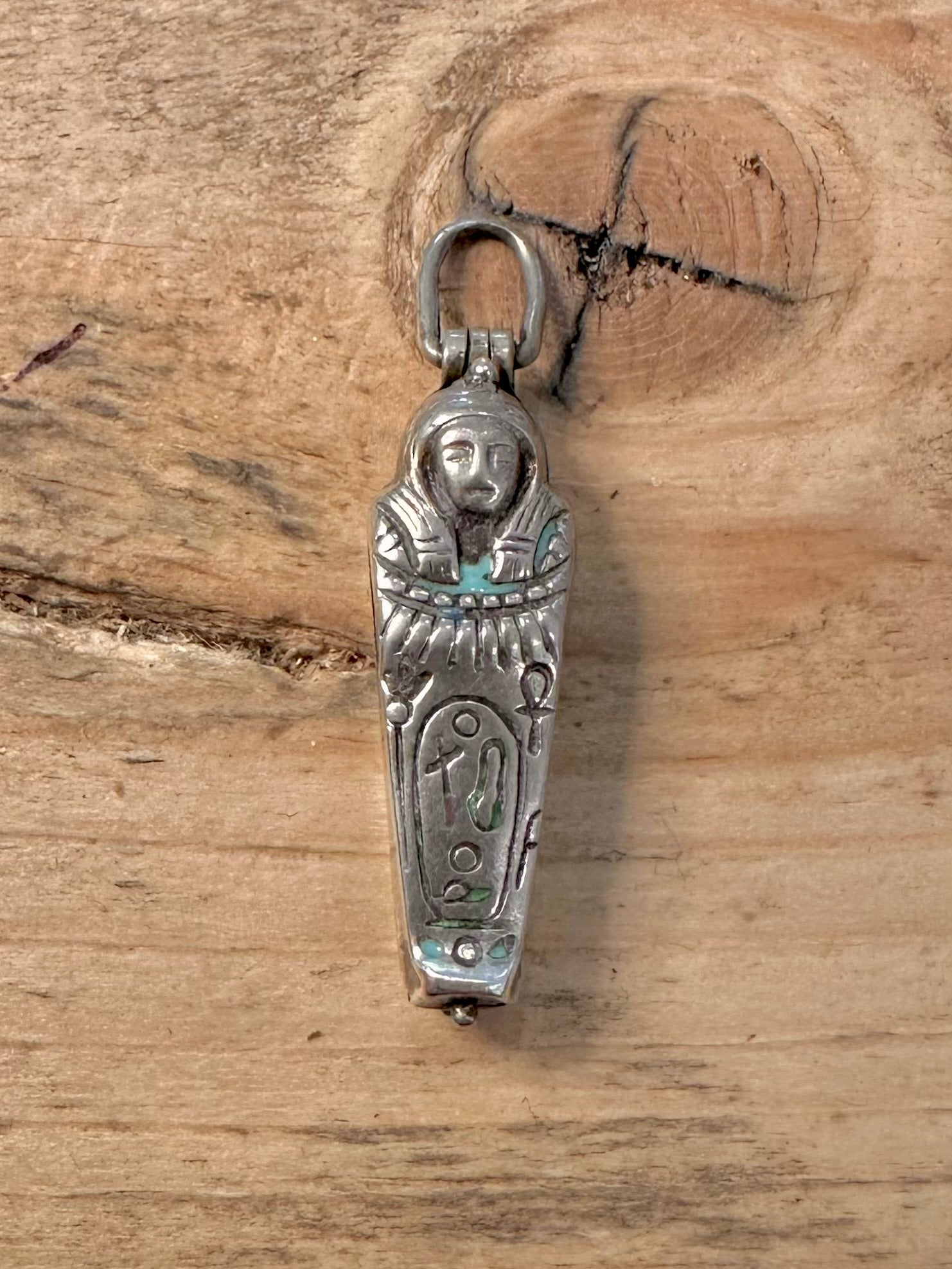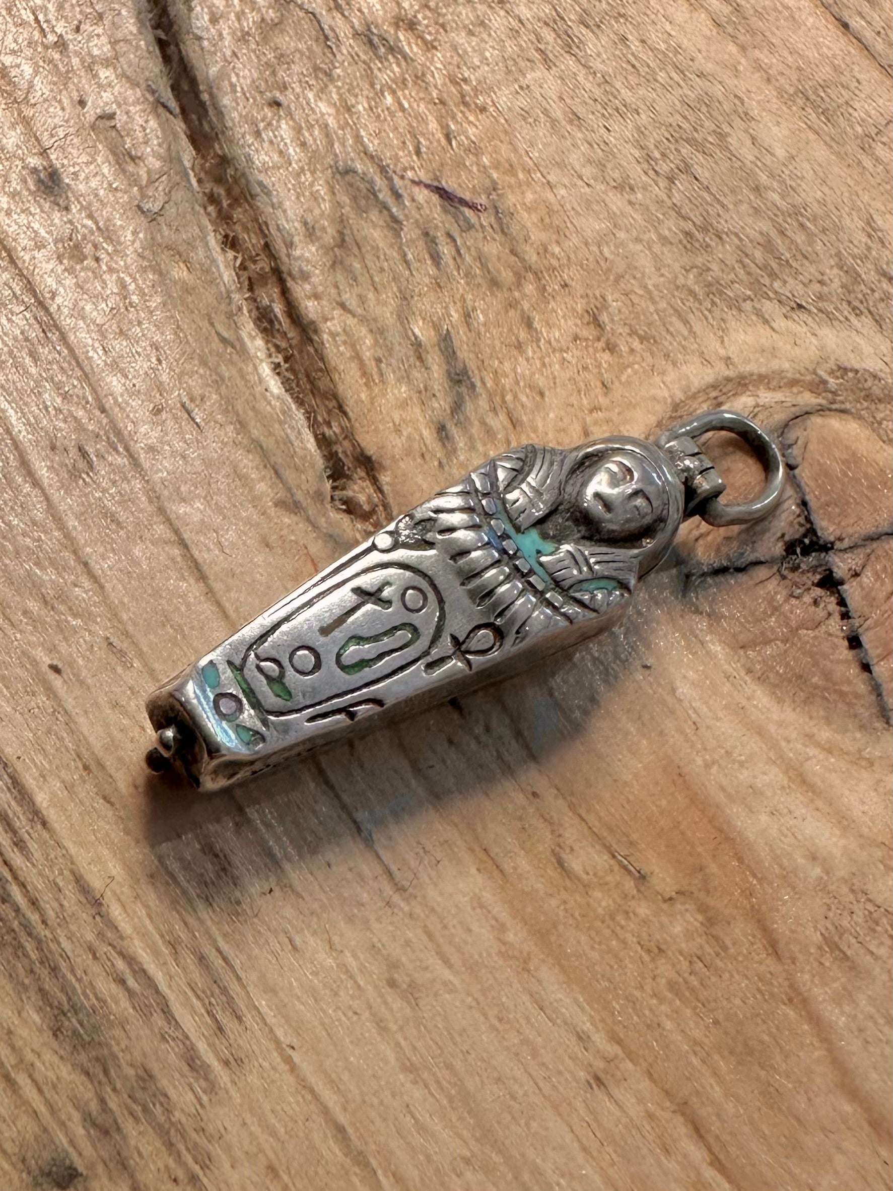 Vintage Rare Sarcophagus with Mummy inside 925 Silver Copper inside Pendant