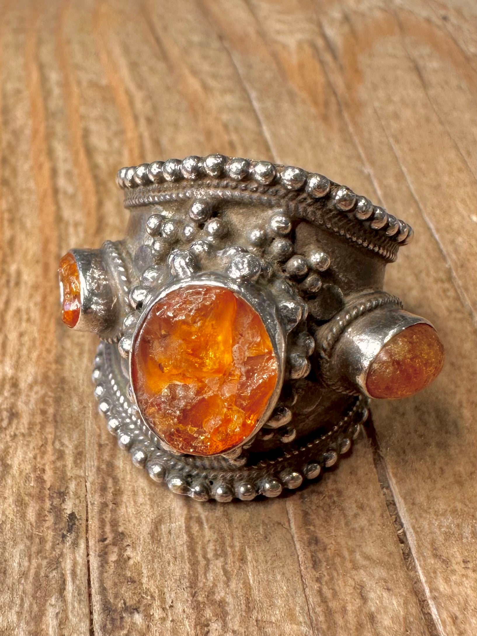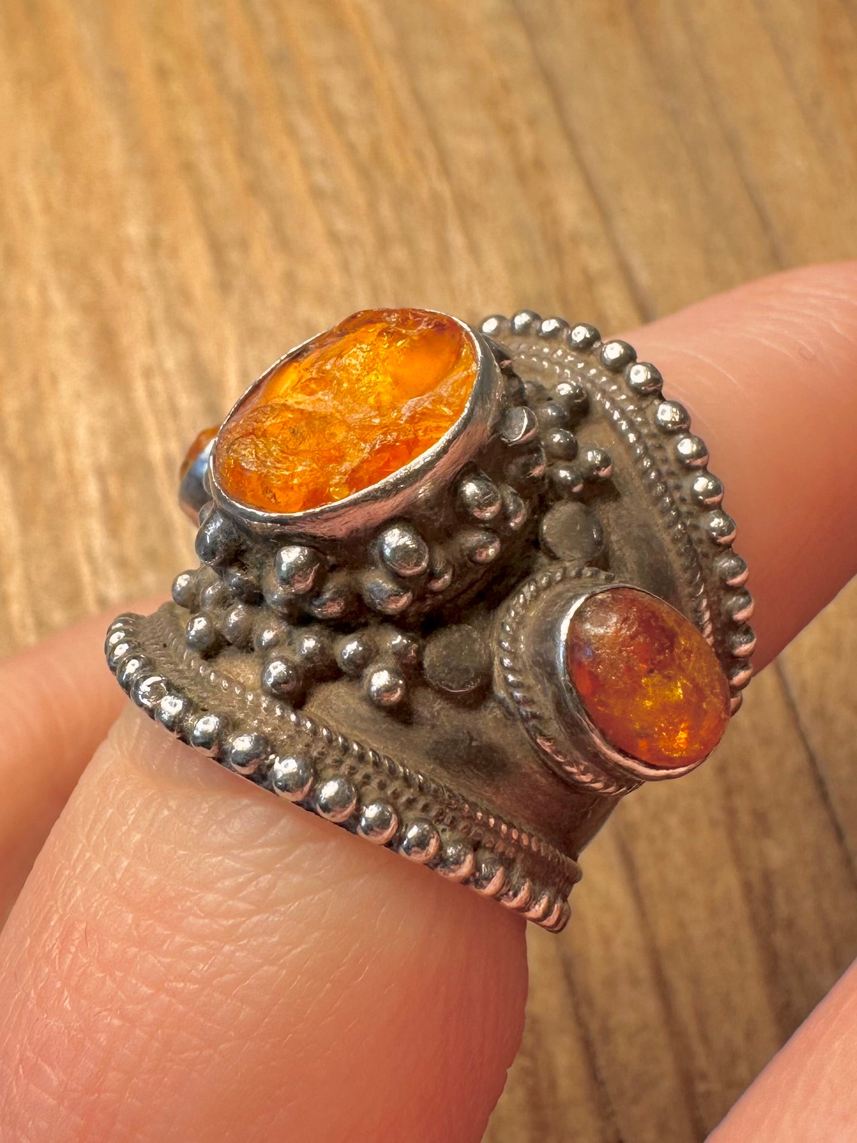Vintage Raw Amber Bohemian Chunky 925 Sterling Silver Size N Ring