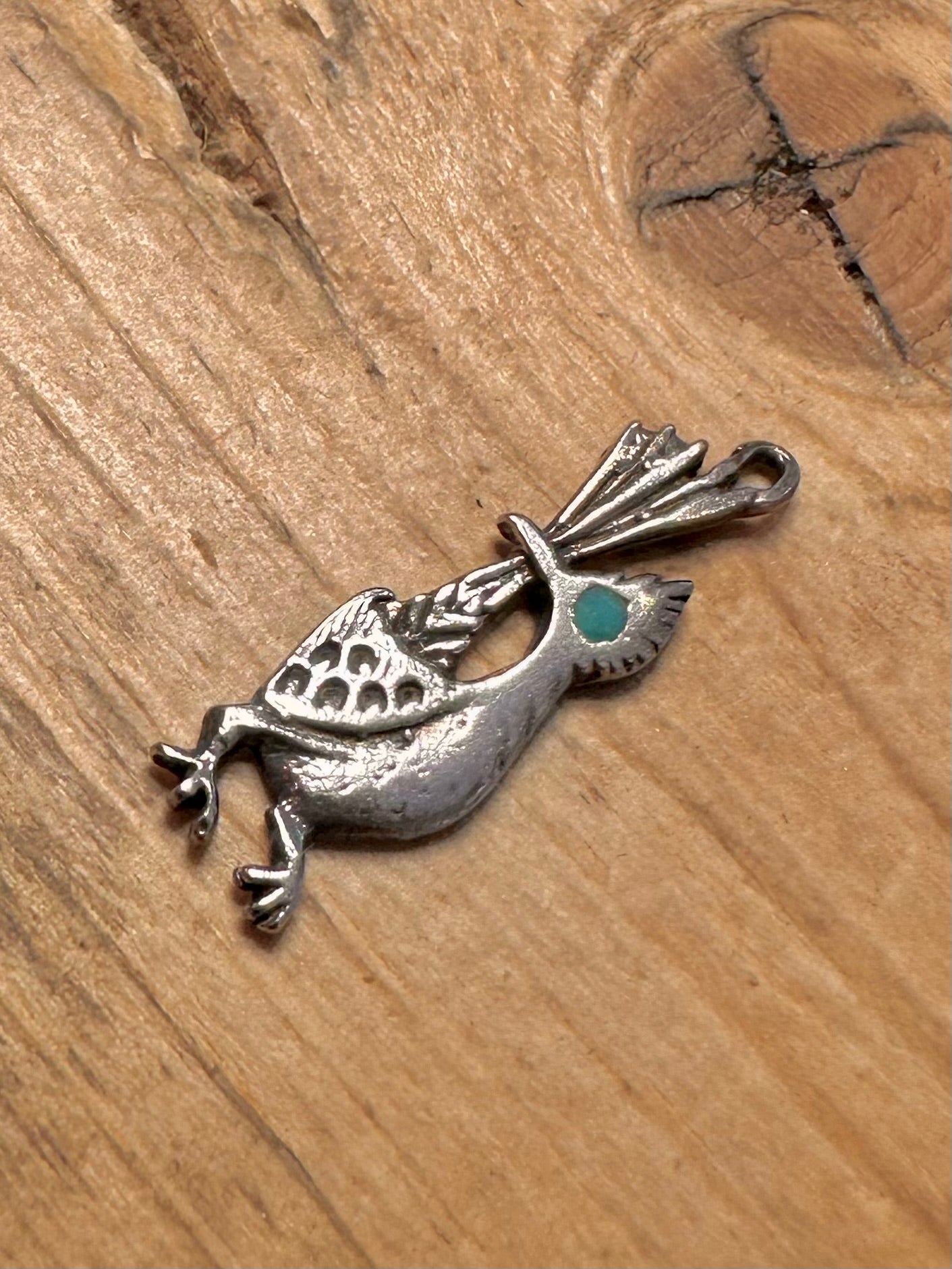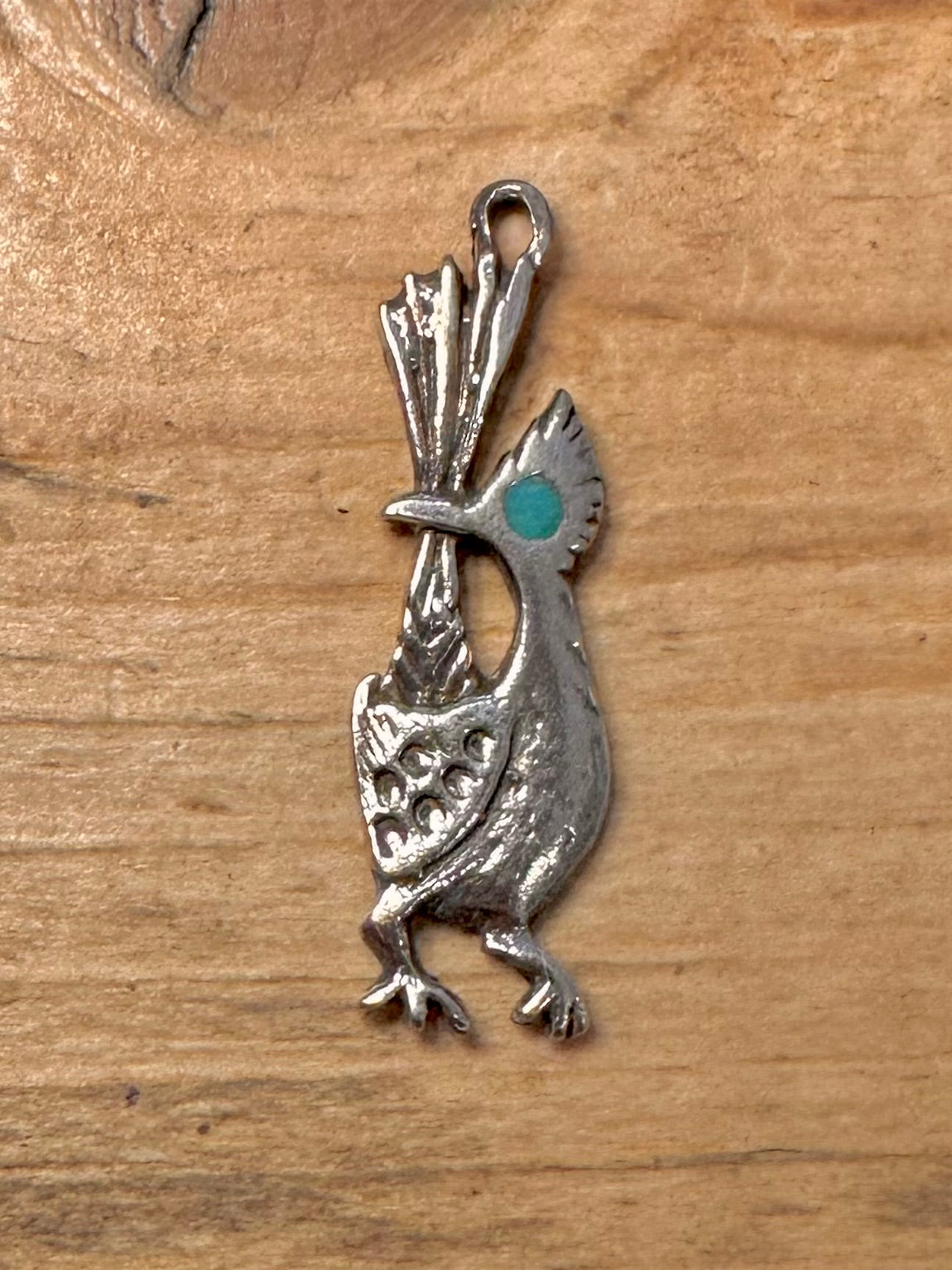 Vintage Roadrunner Turquoise 925 Silver Pendant