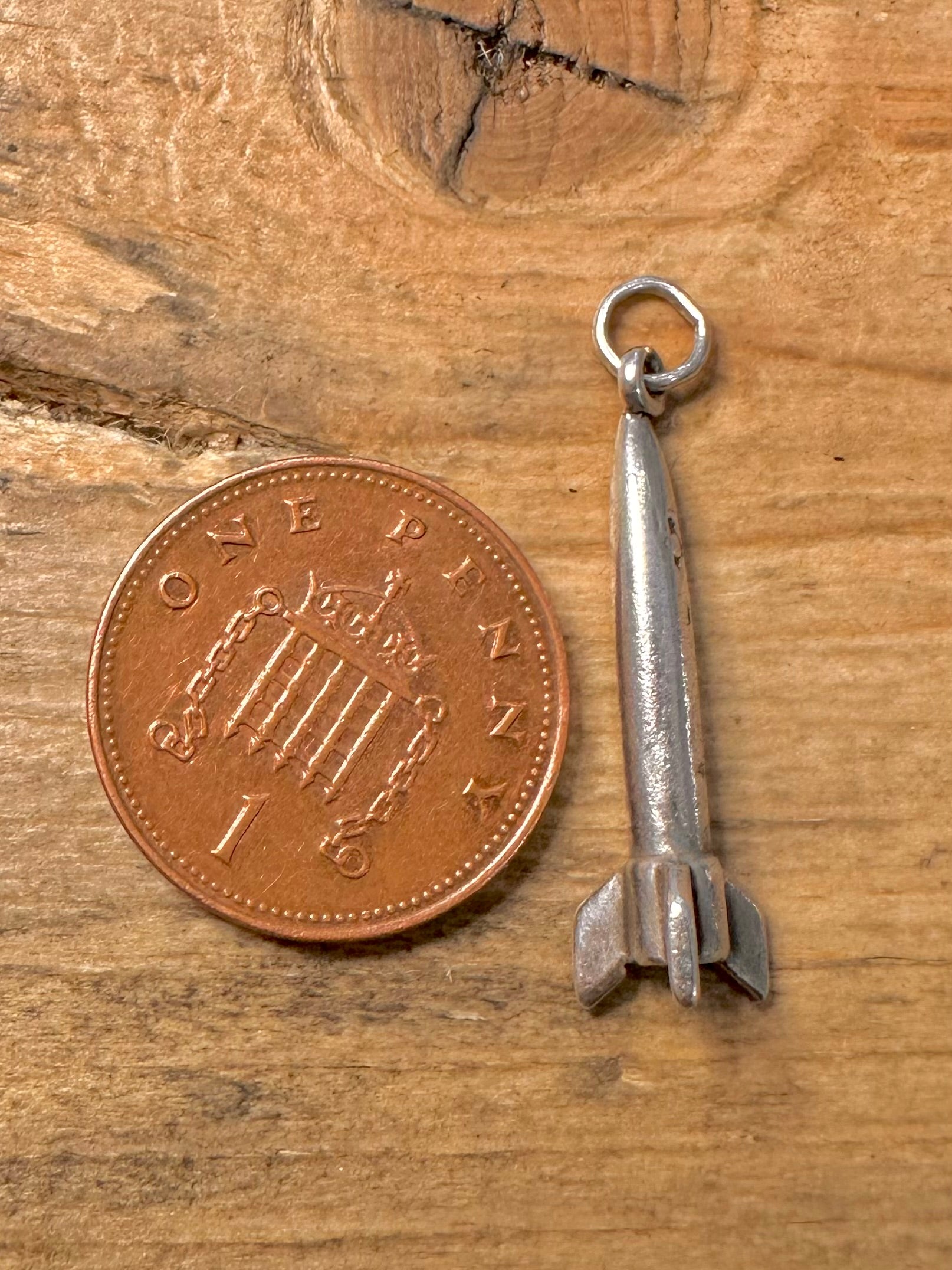 Vintage Rocket Spaceship 925 Silver Charm Pendant