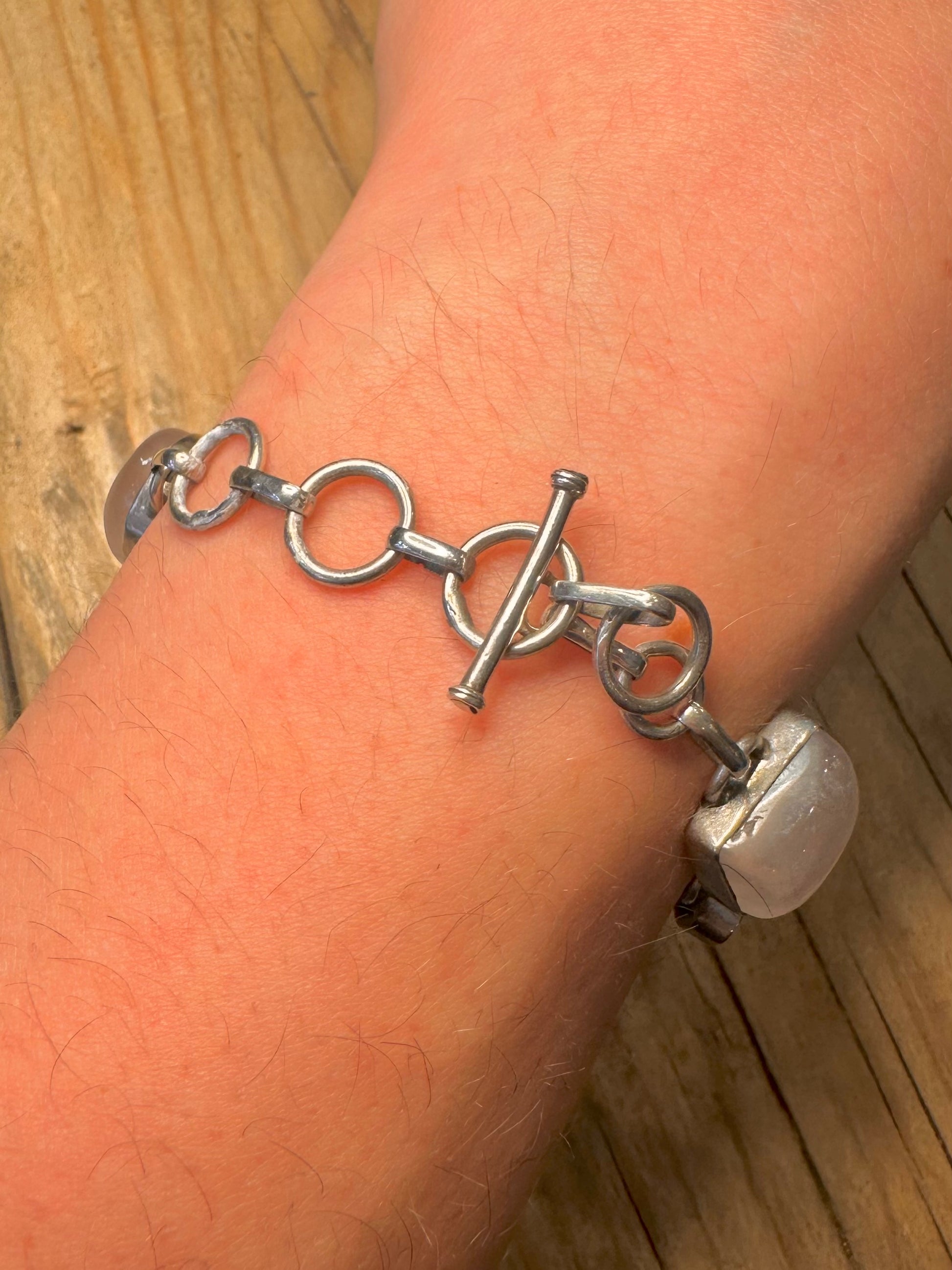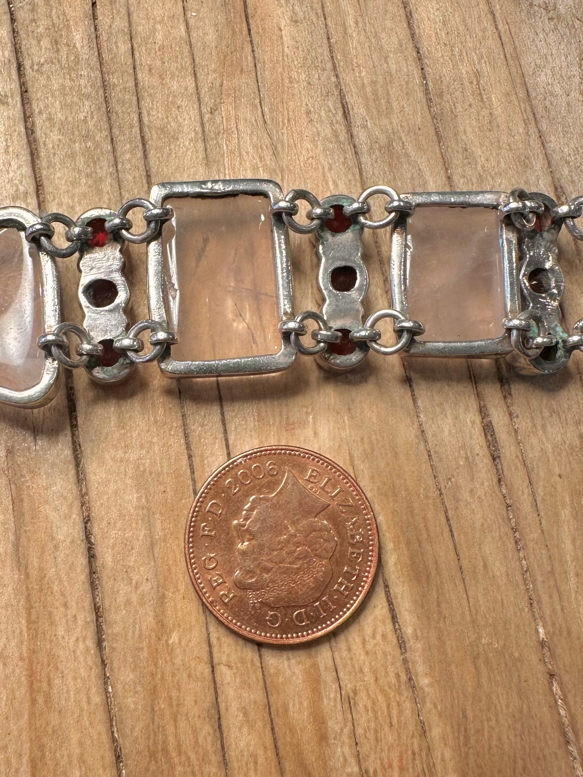 Vintage Rose Quarts and Red Stone 925 Sterling Silver 6 to 7.5 Bracelet