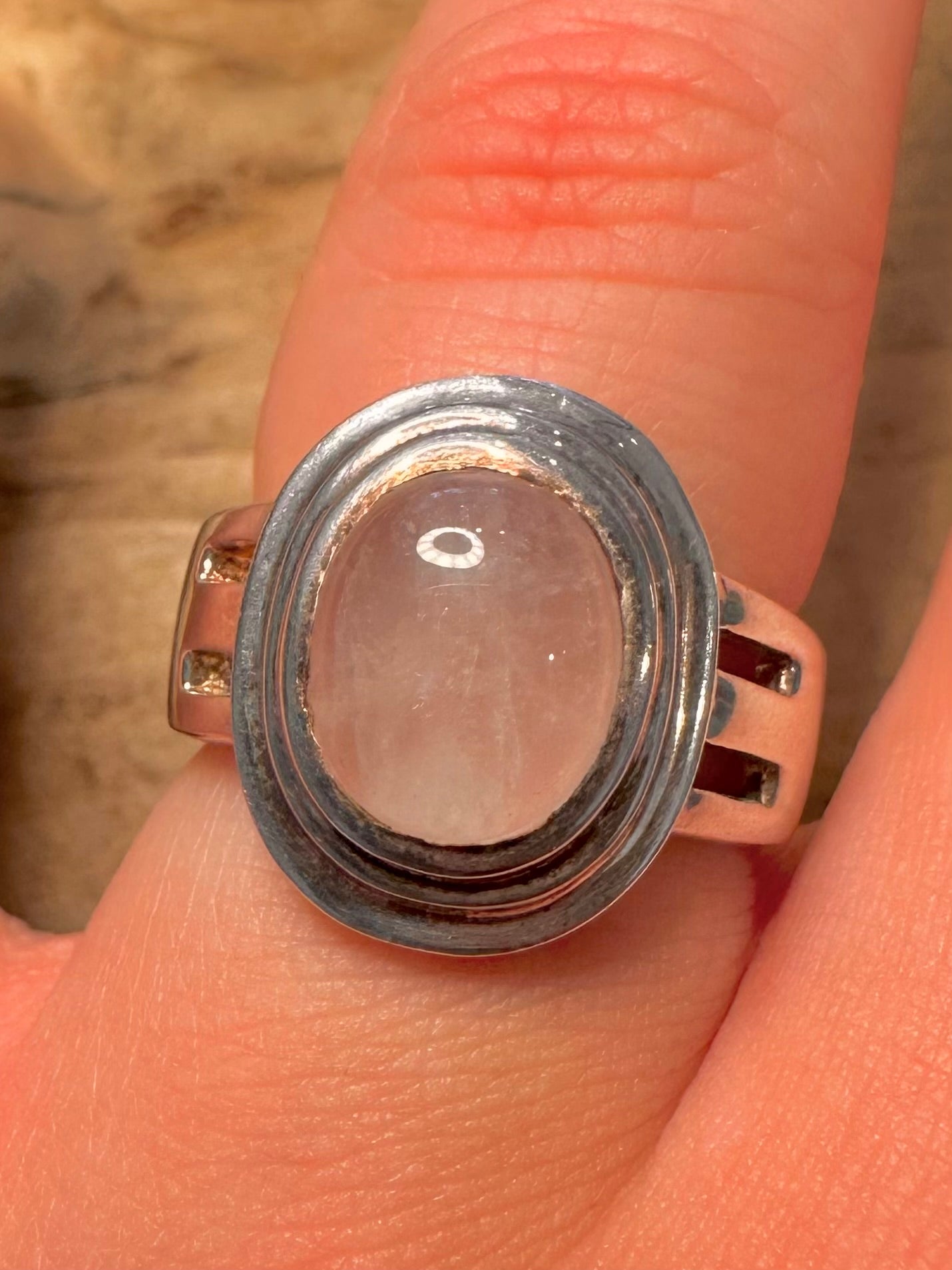Vintage Rose Quarts Oval 925 Silver Size P Ring