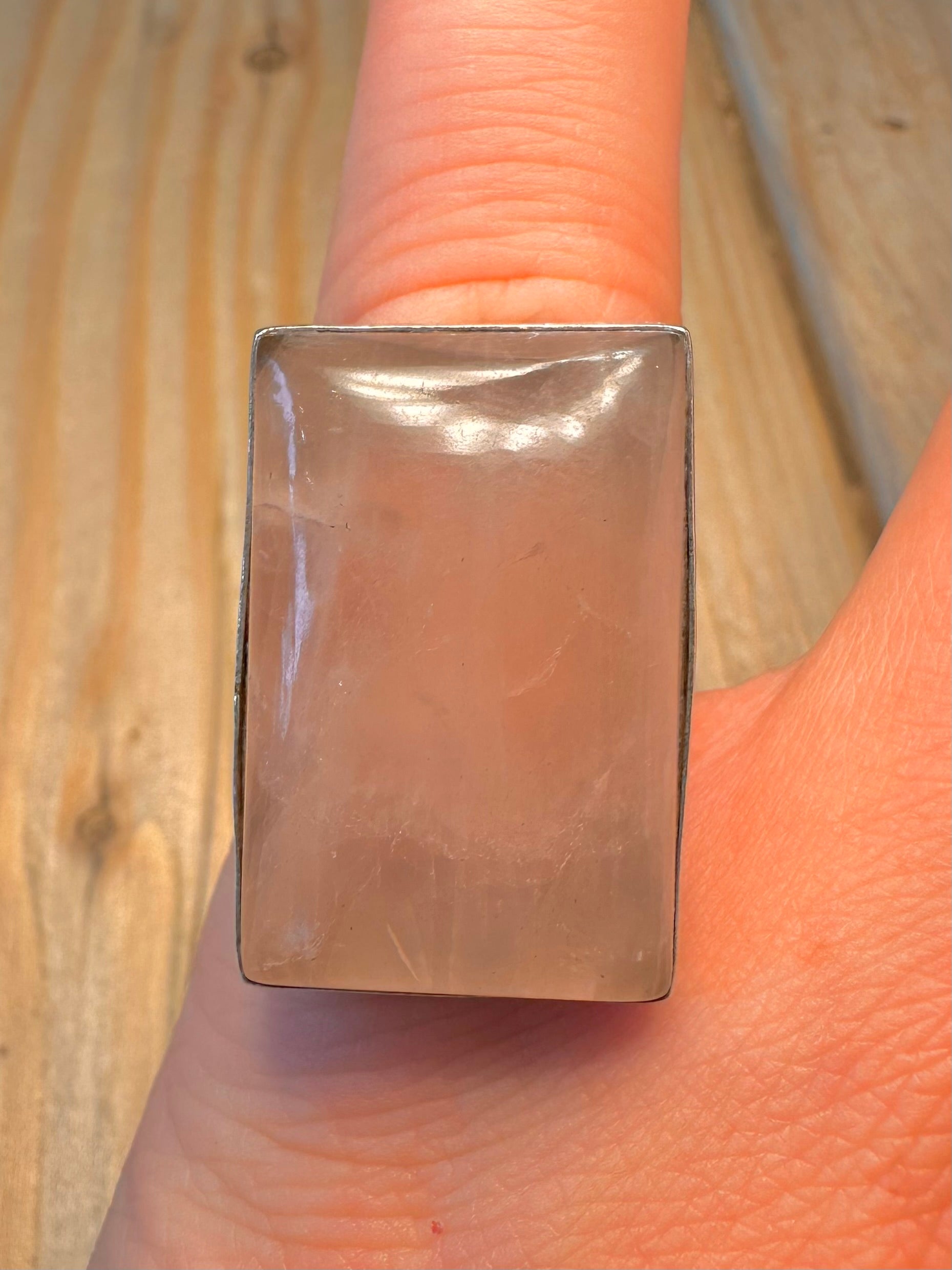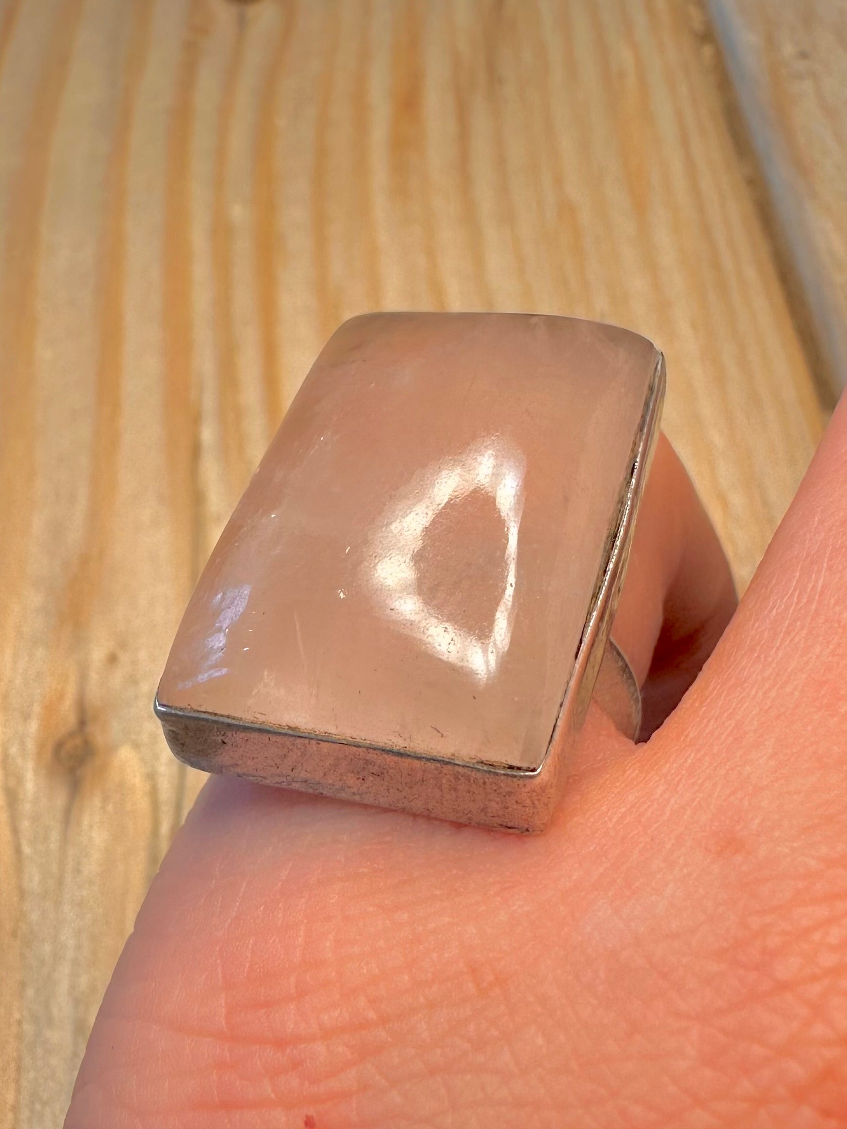 Vintage Rose Quarts Rectangle 925 Silver Size M1/2 Ring