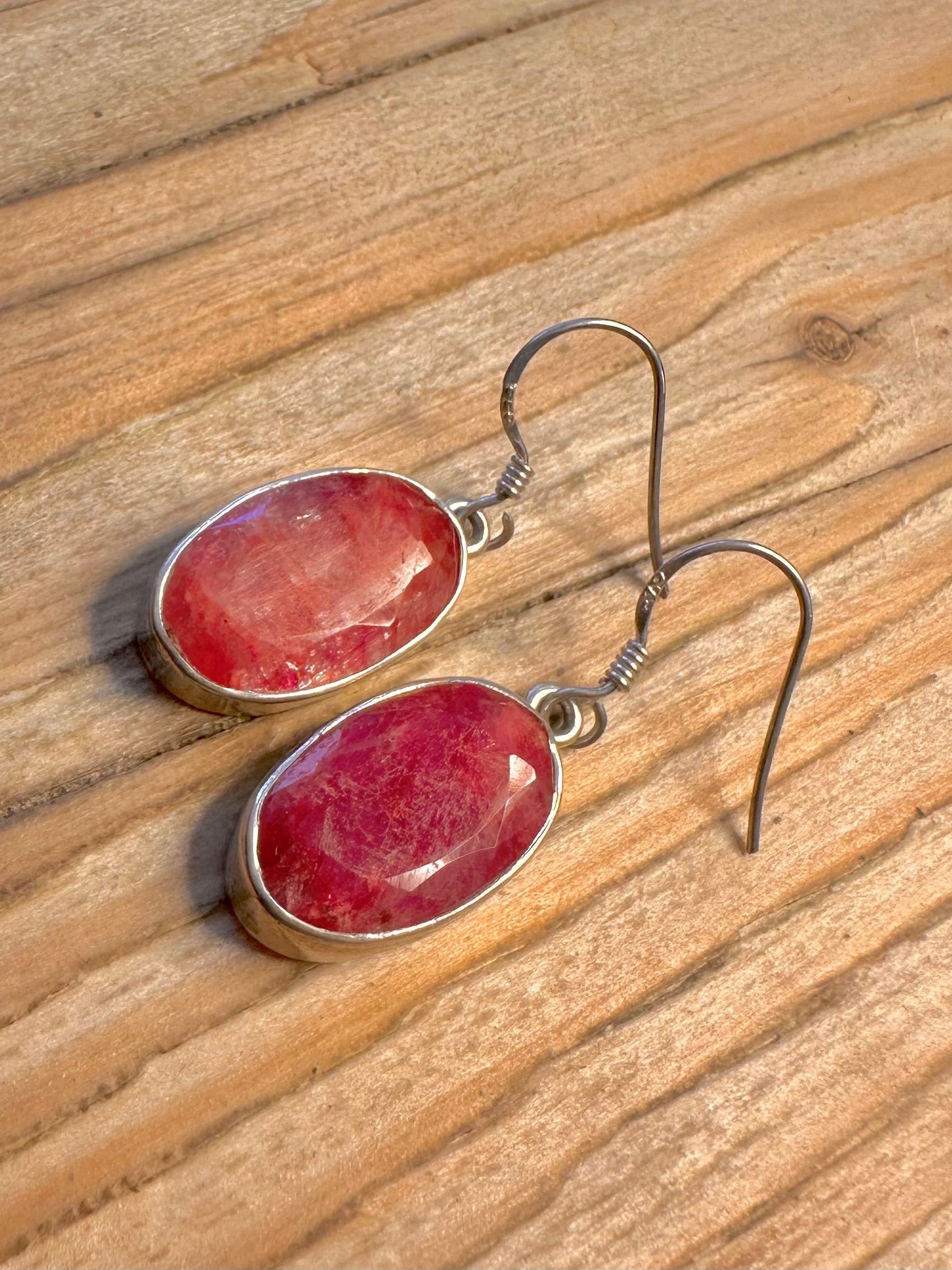 Vintage Ruby Red Oval 925 Sterling Silver Earrings