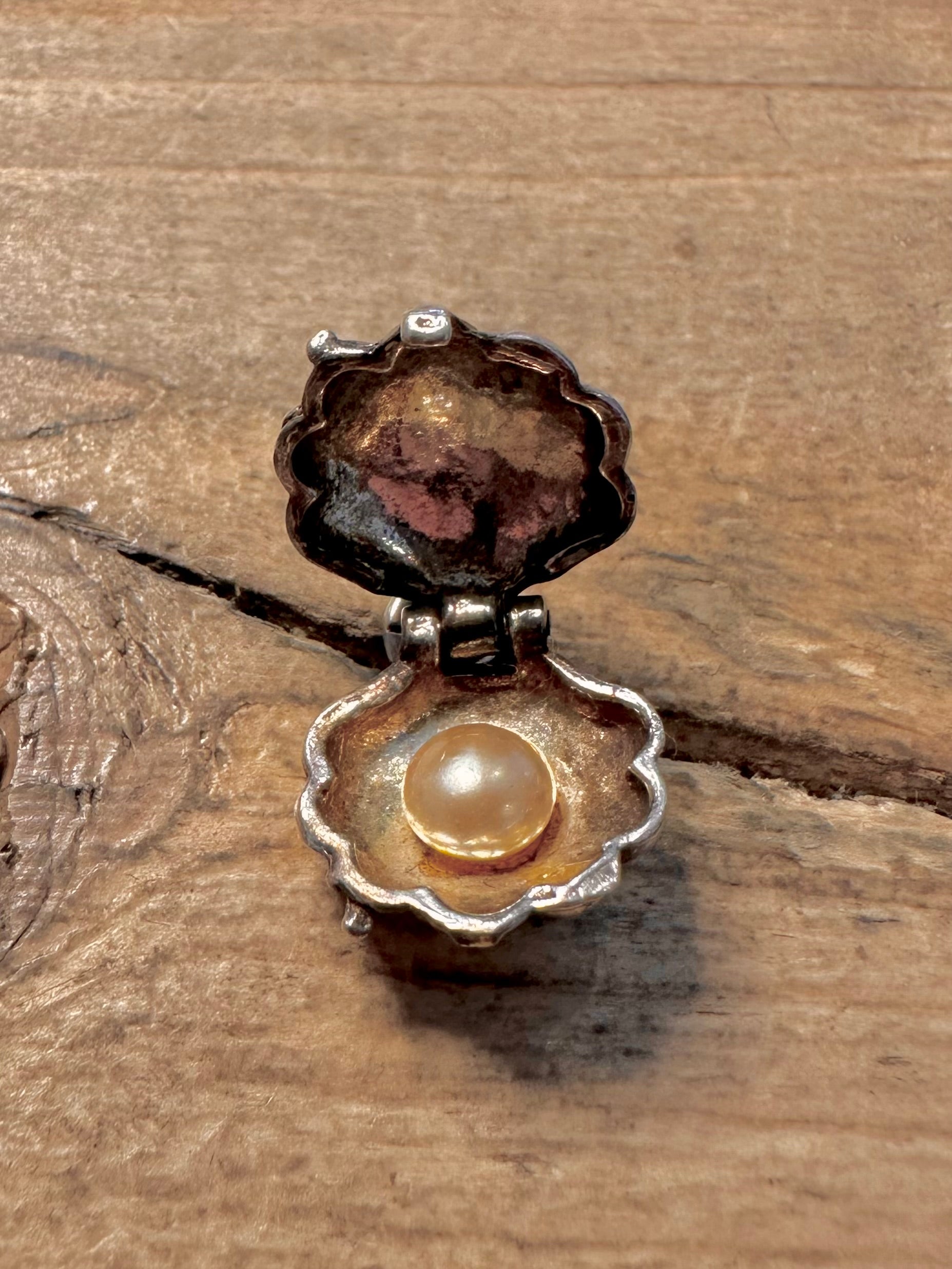 Vintage Shell with Pearl 925 Silver Charm Pendant