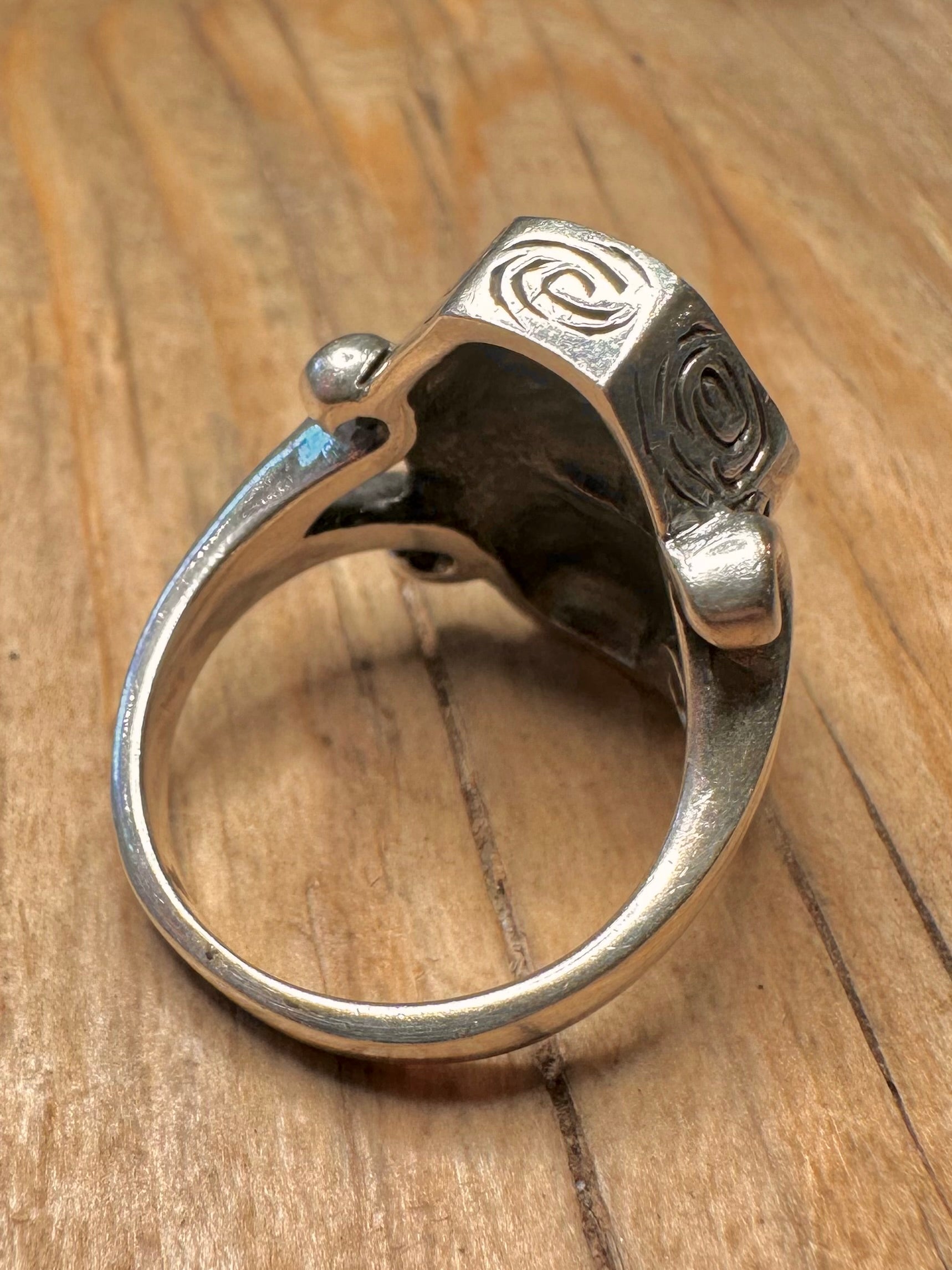 Vintage Skull Coffin Engraved 925 Sterling Silver Size U Ring