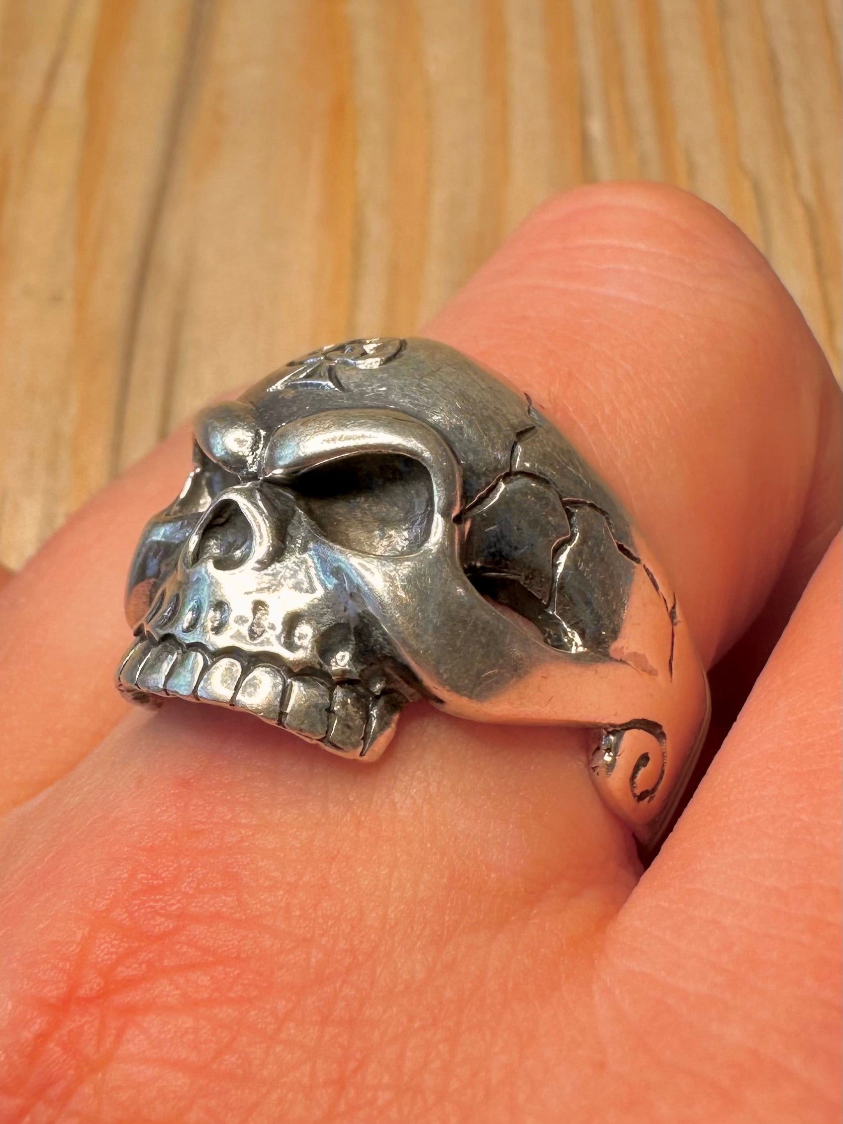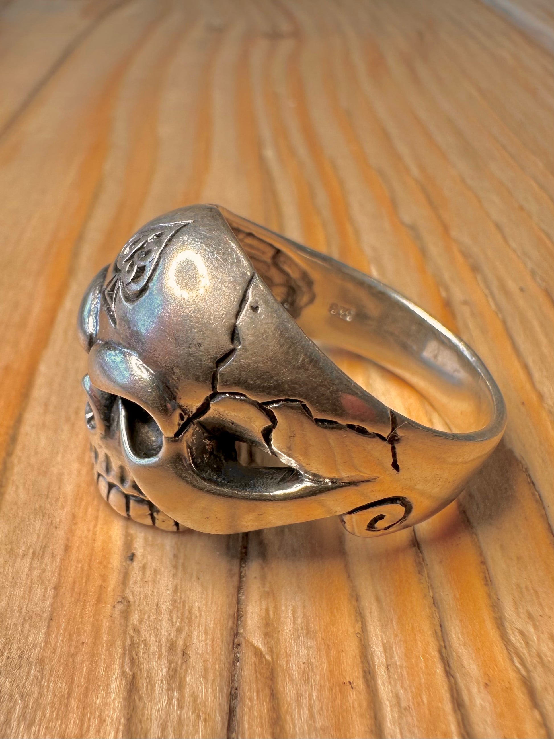 Vintage Skull Engraved Head 925 Sterling Silver Size Z Ring