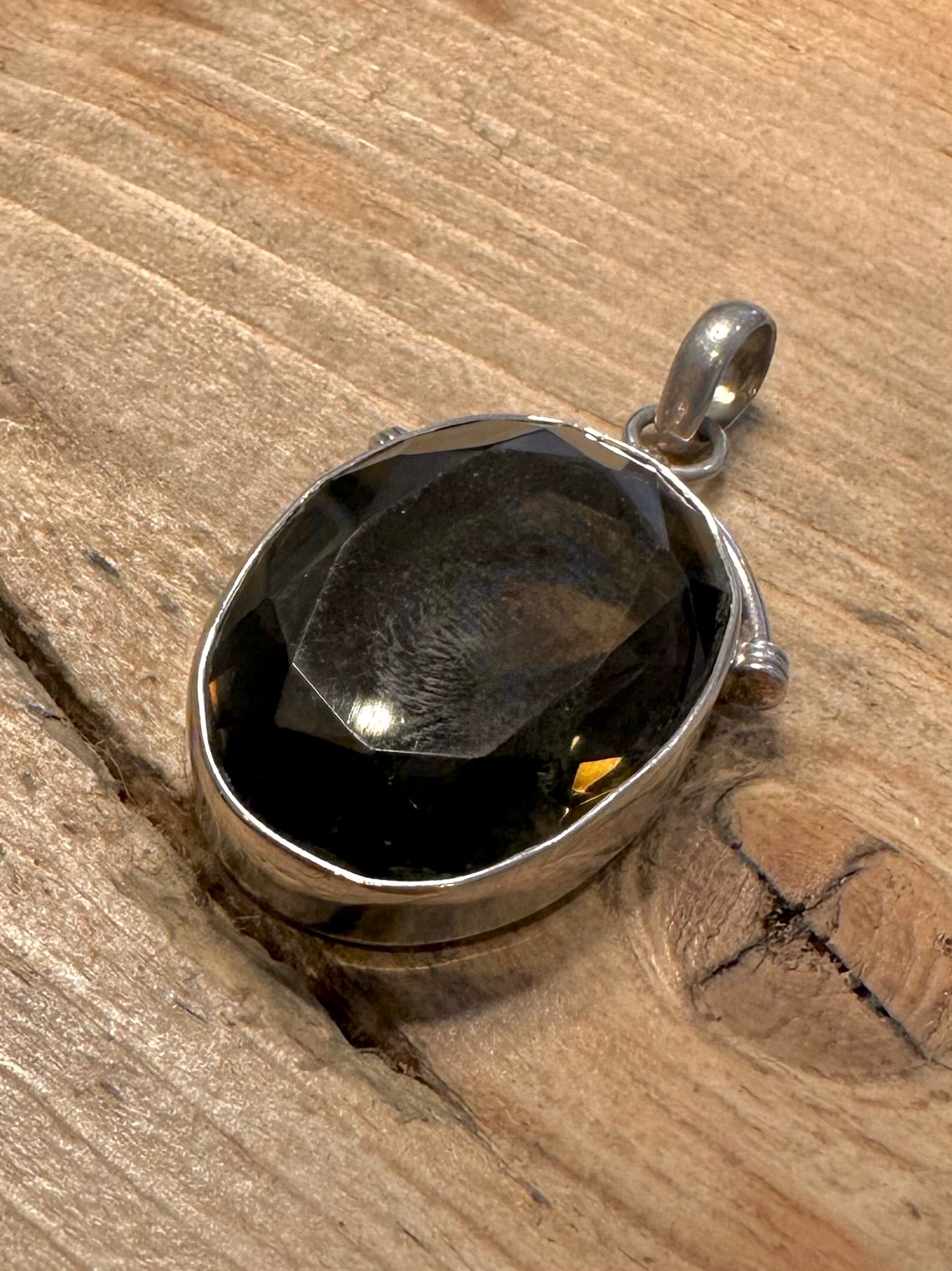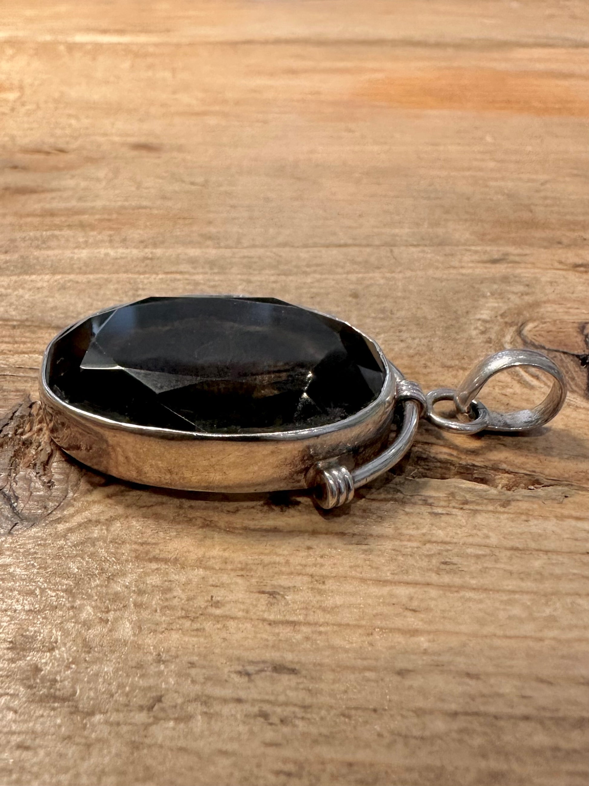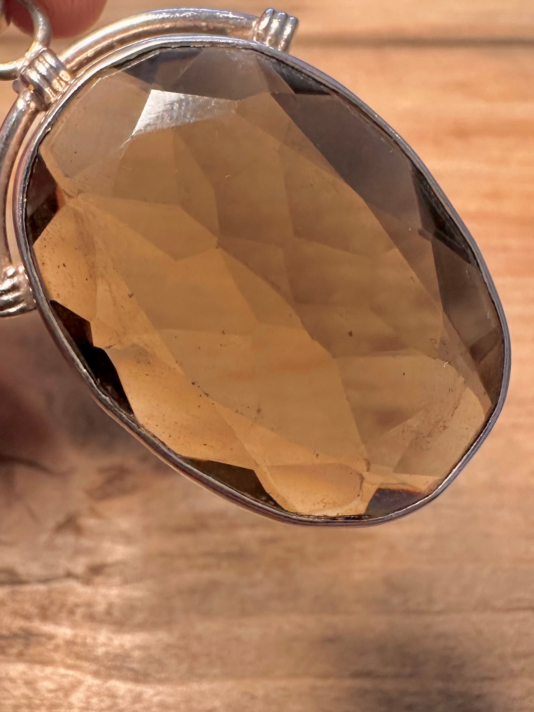Vintage Smokey Quarts Faceted 925 Silver Pendanr