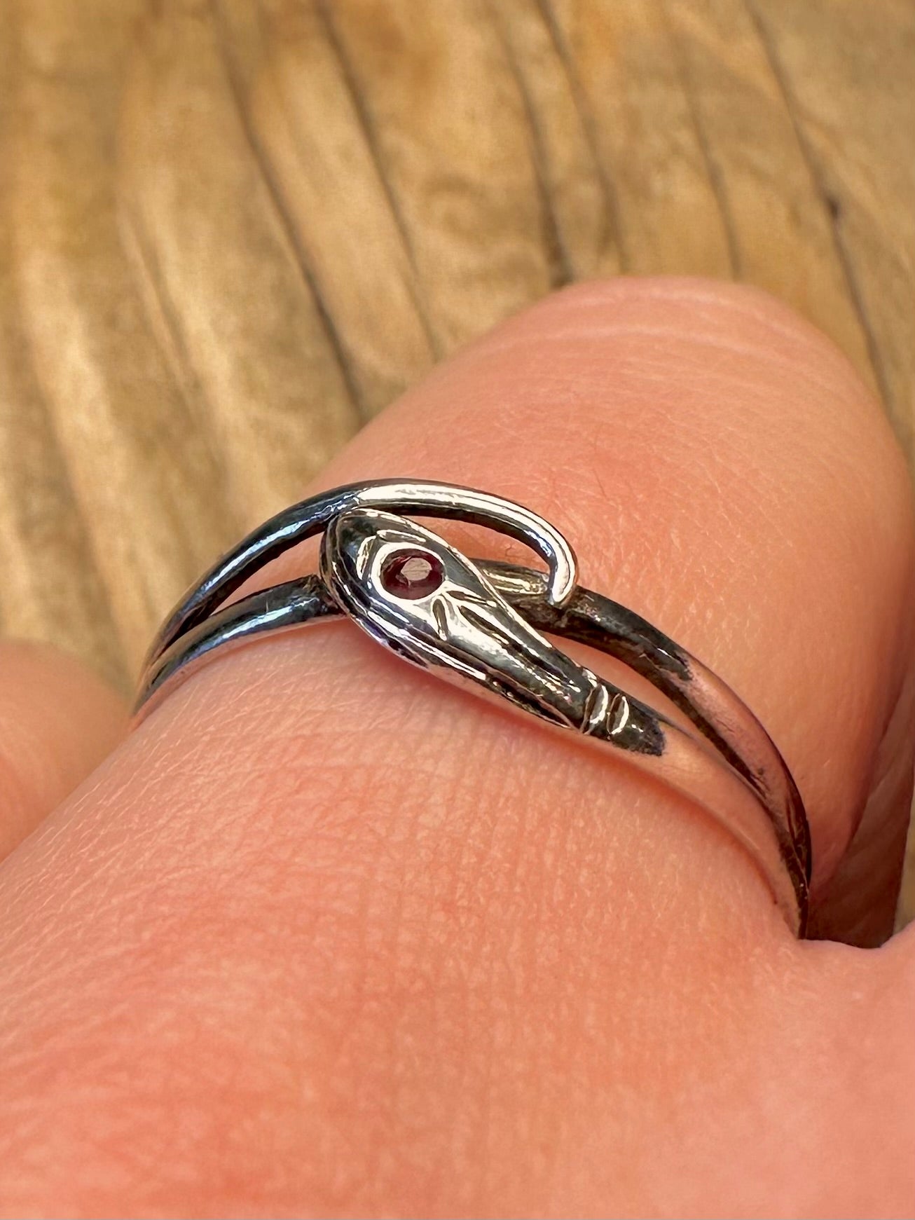 Vintage Snake Garnet Overlapping 925 Sterling Silver Size Q Ring
