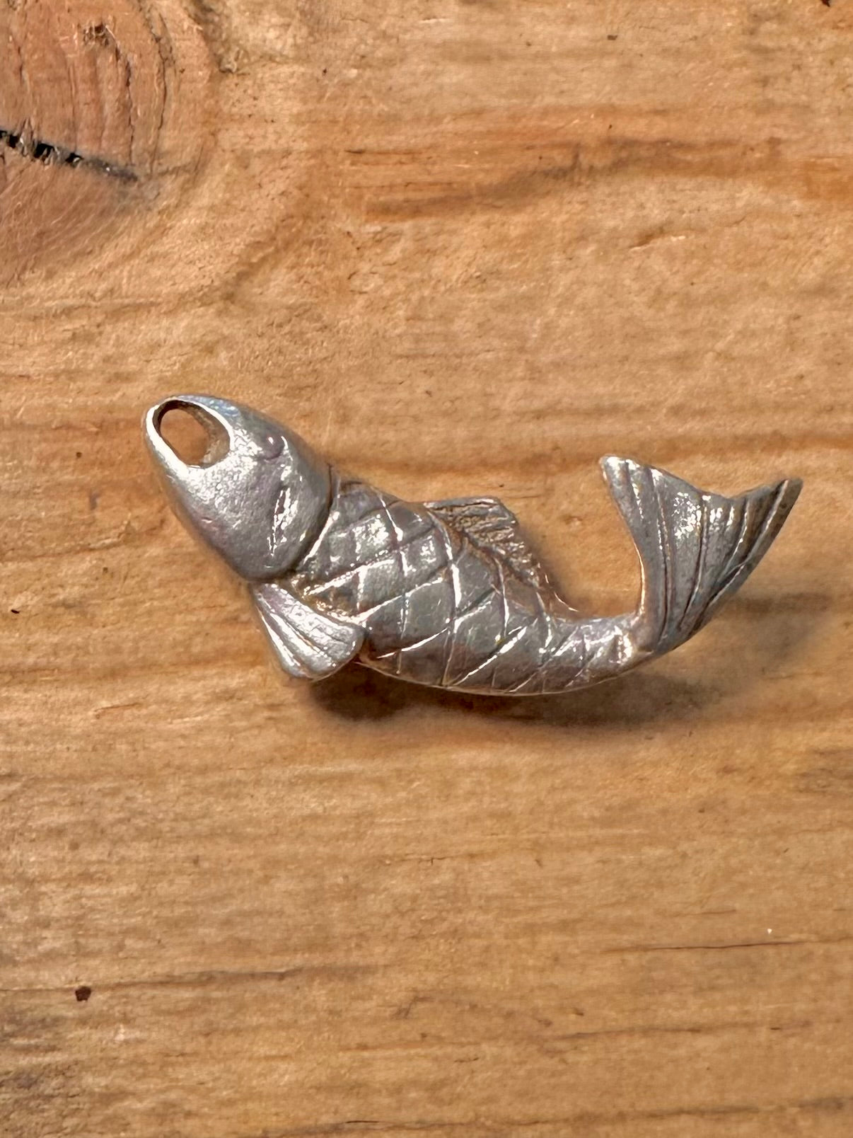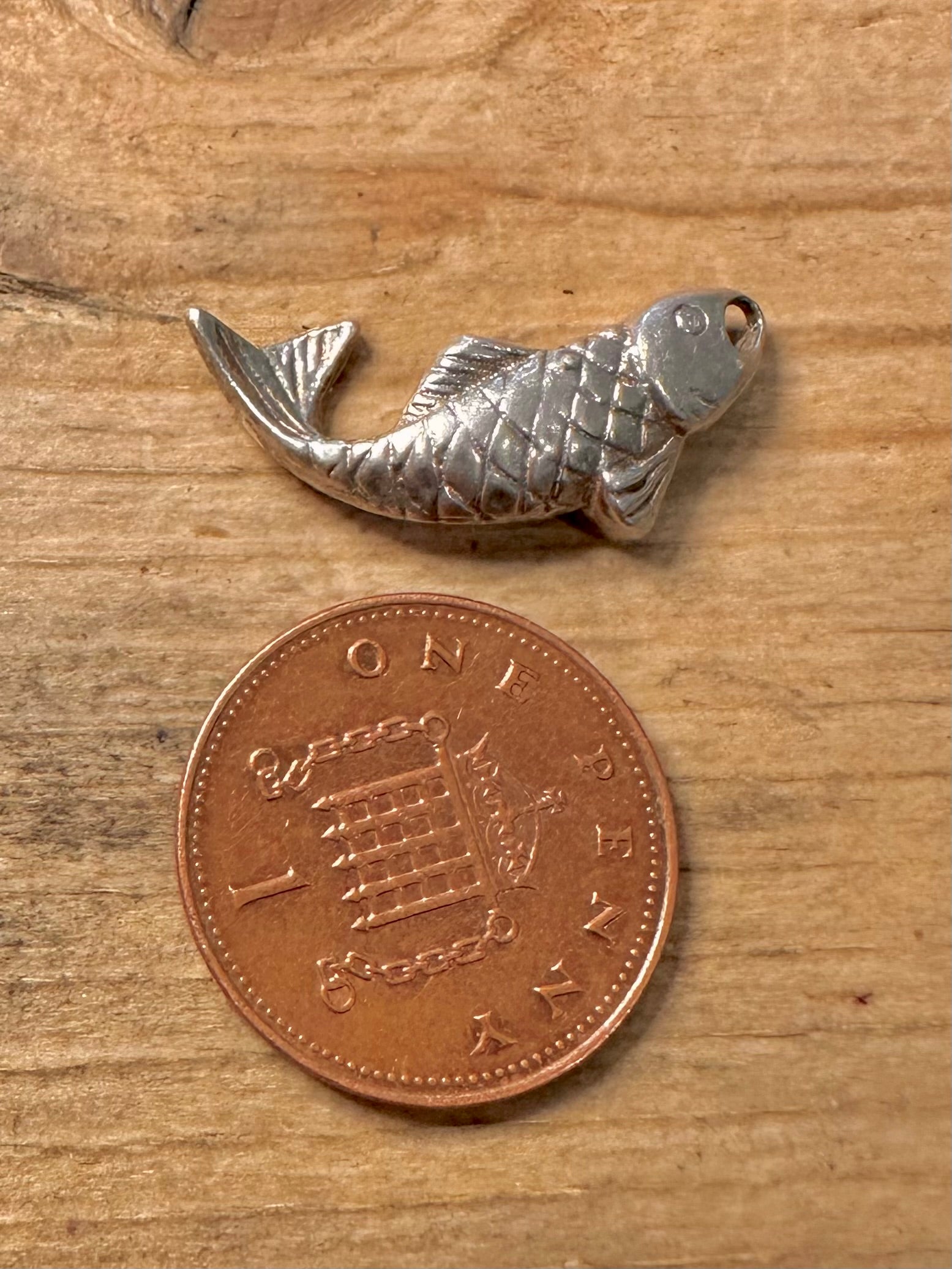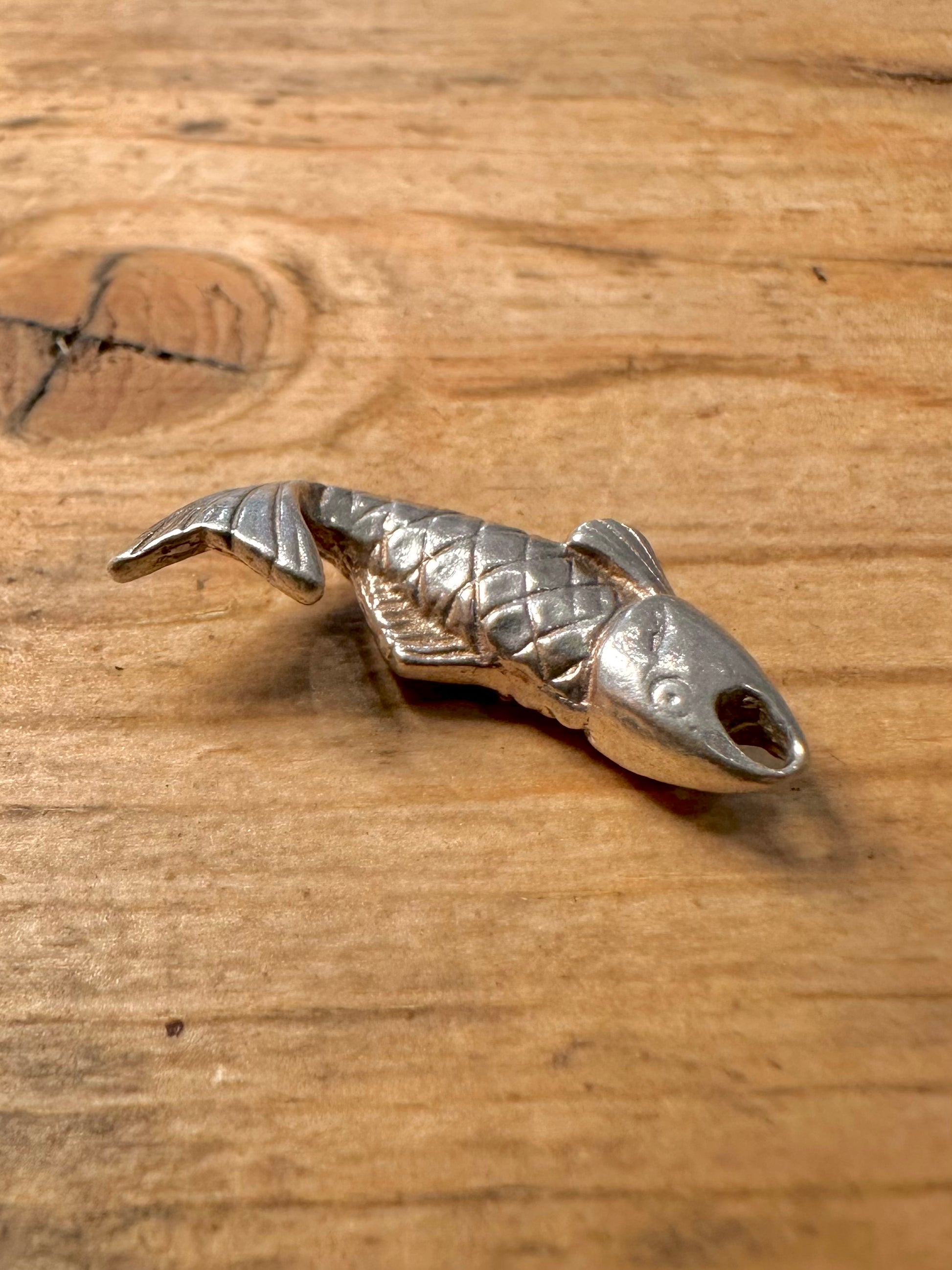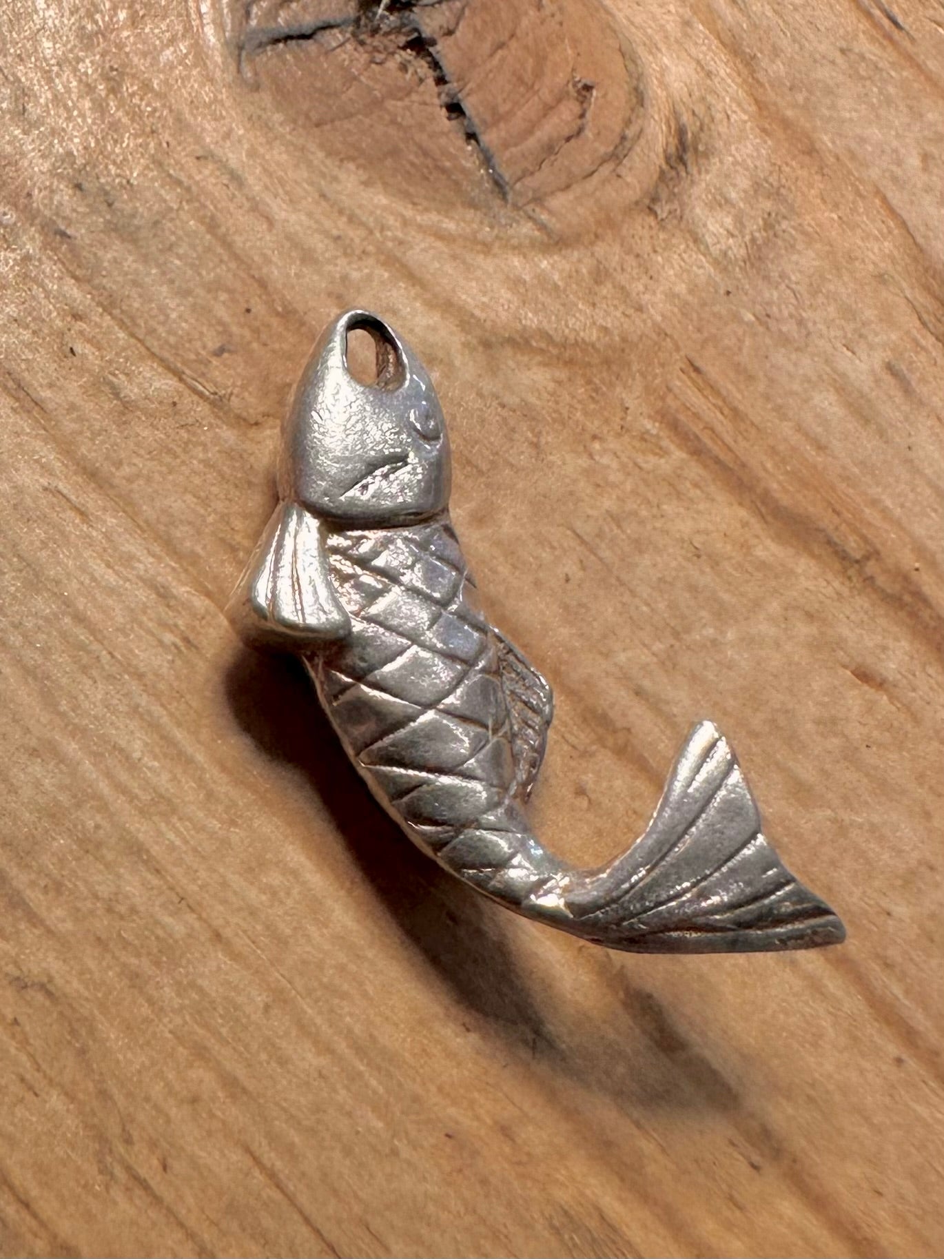 Vintage Solid Fish 925 Silver Charm Pendant