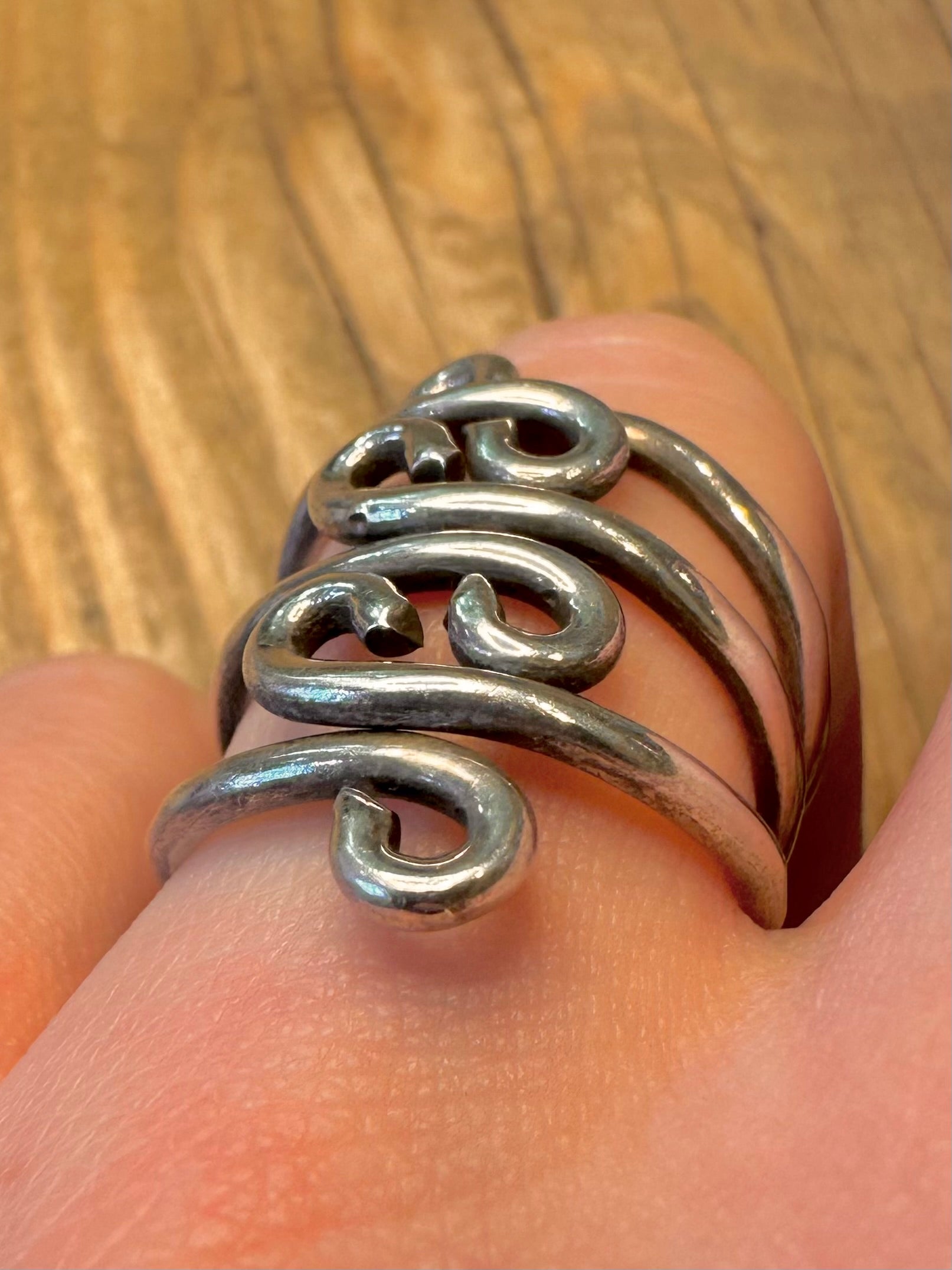 Vintage Swirly Layer 925 Sterling Silver Size P1/2 Ring