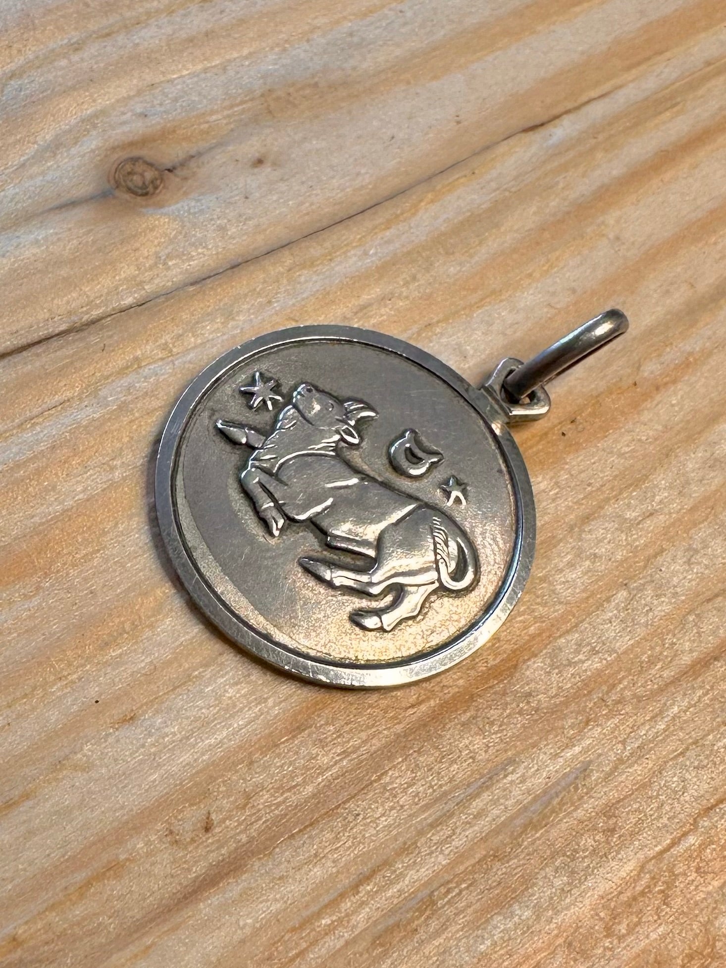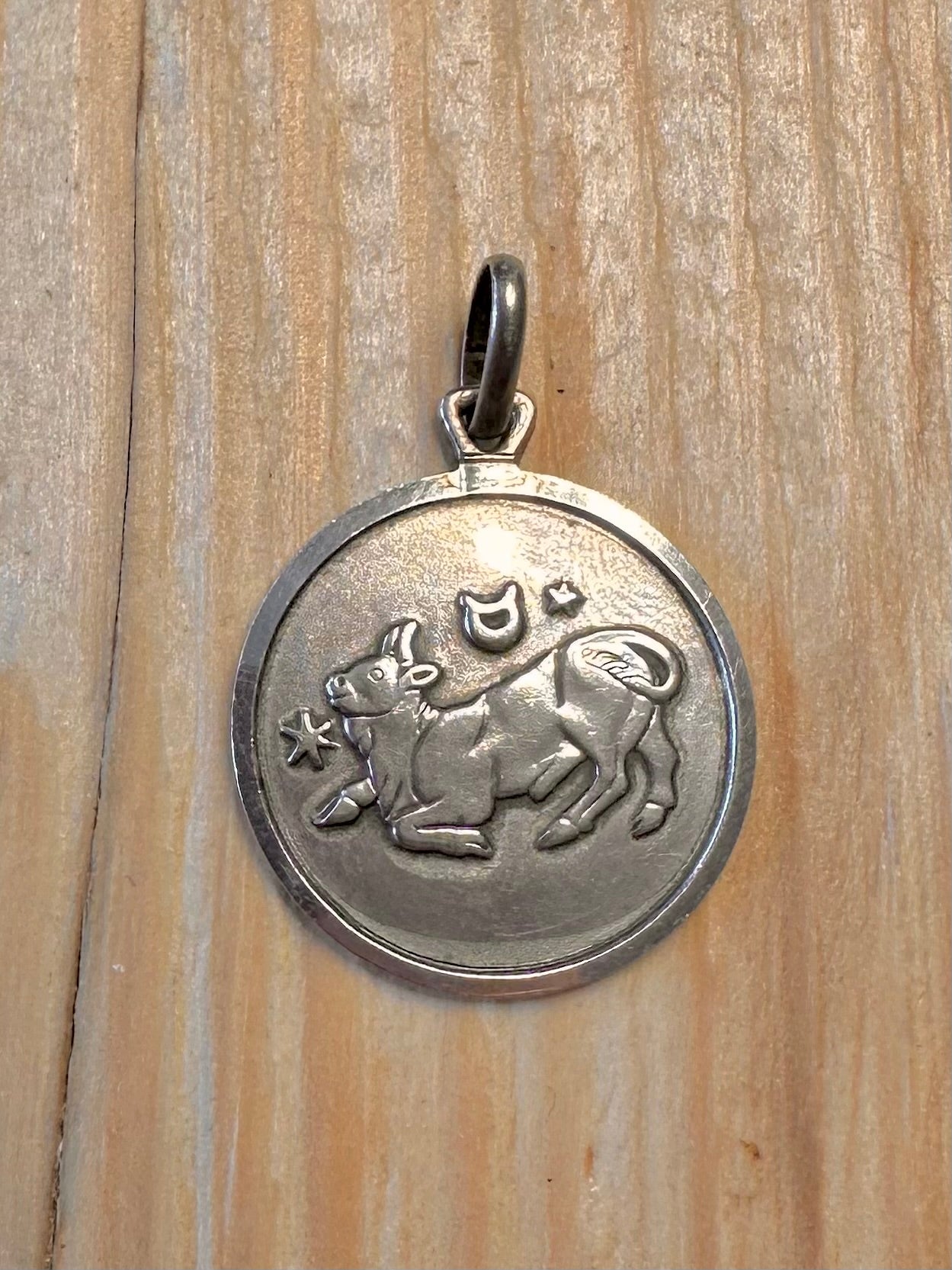 Vintage Taurus Zodiac Sign 835 Silver Pendant