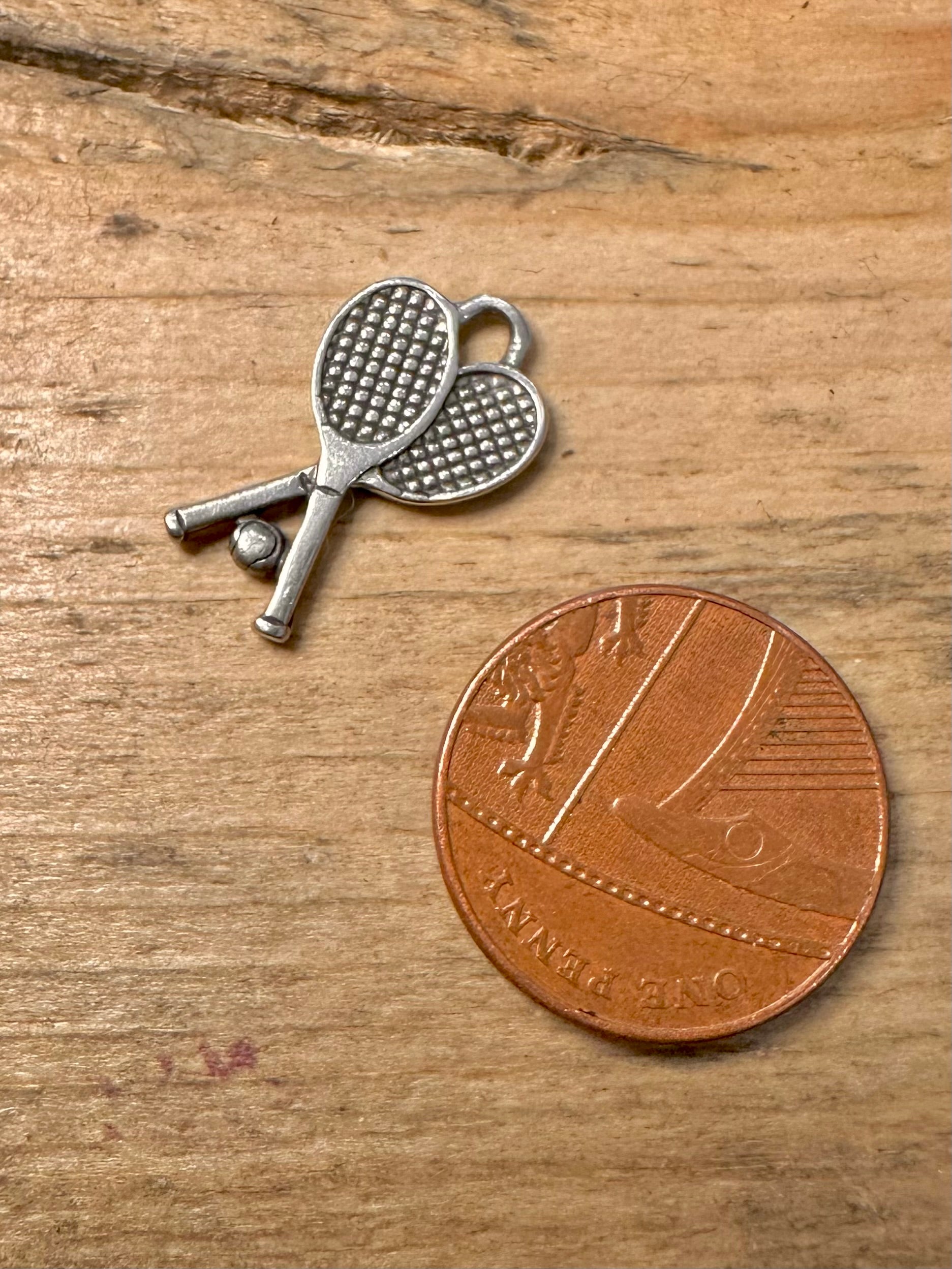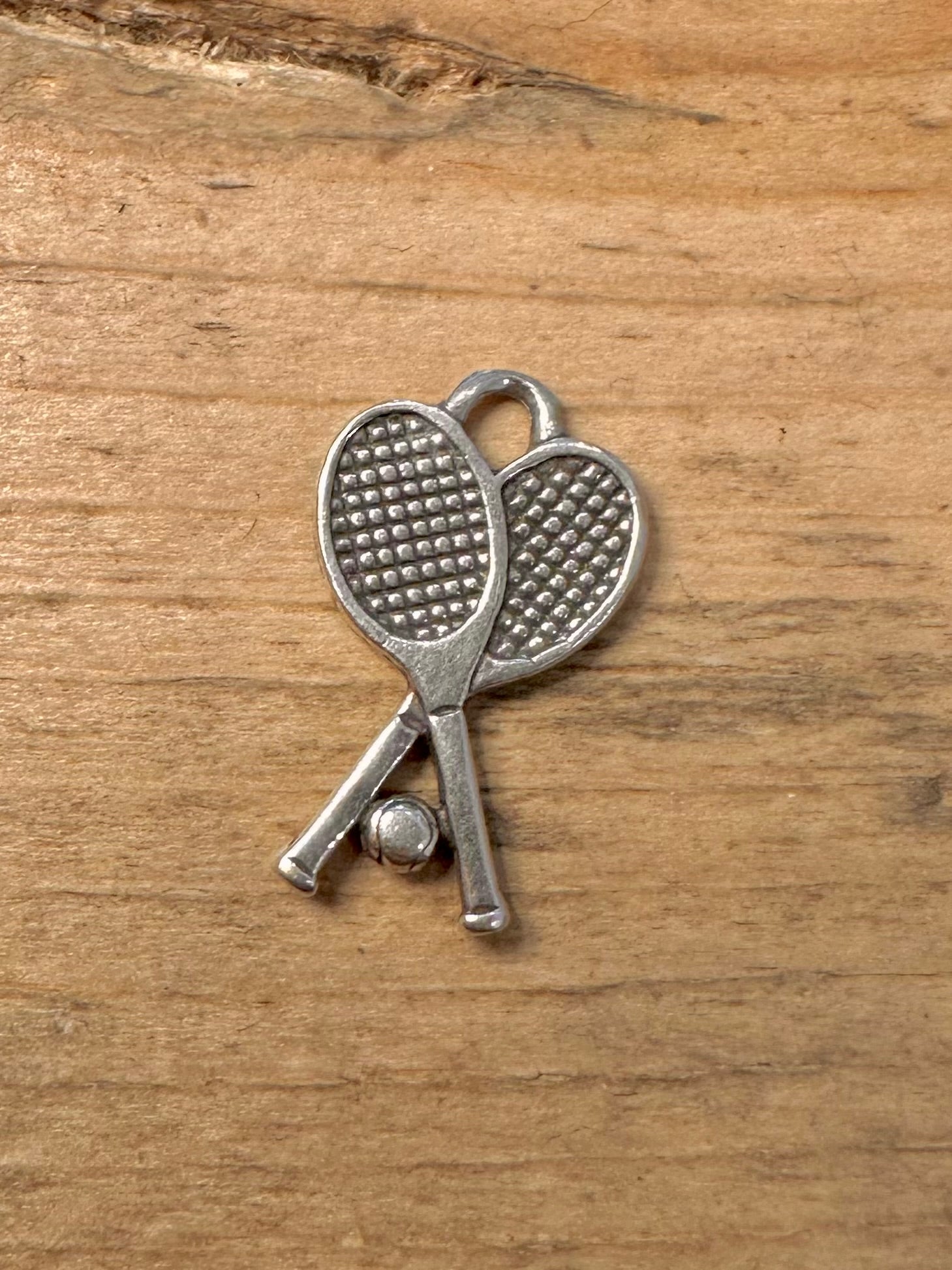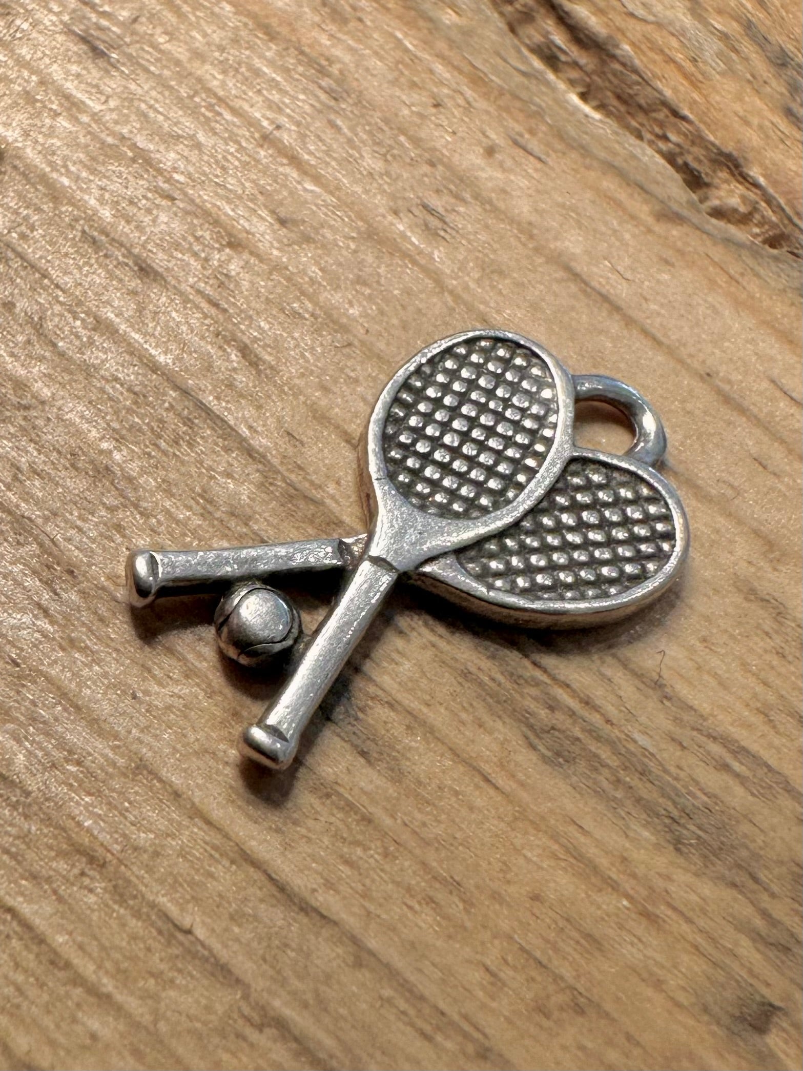 Vintage Tennis Racket and Ball 925 Silver Charm Pendant
