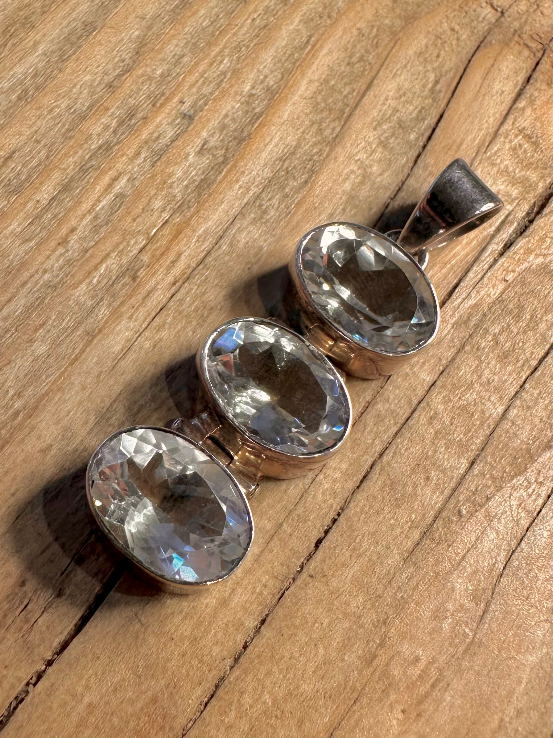 Vintage Three White Gemstone 925 Sterling Silver Hallmarked Pendant