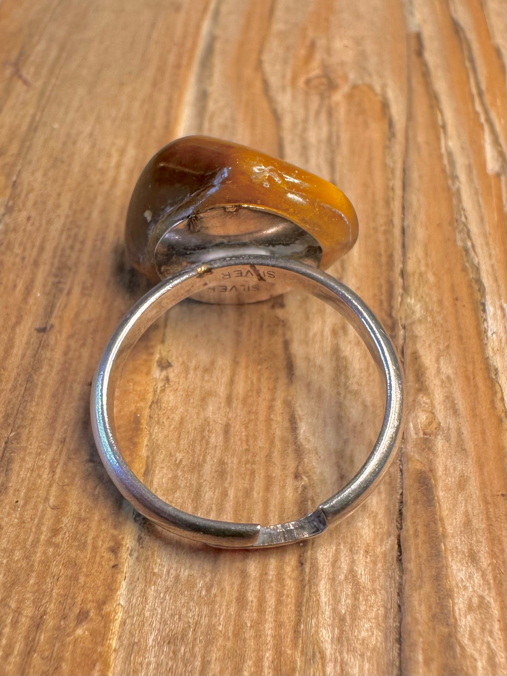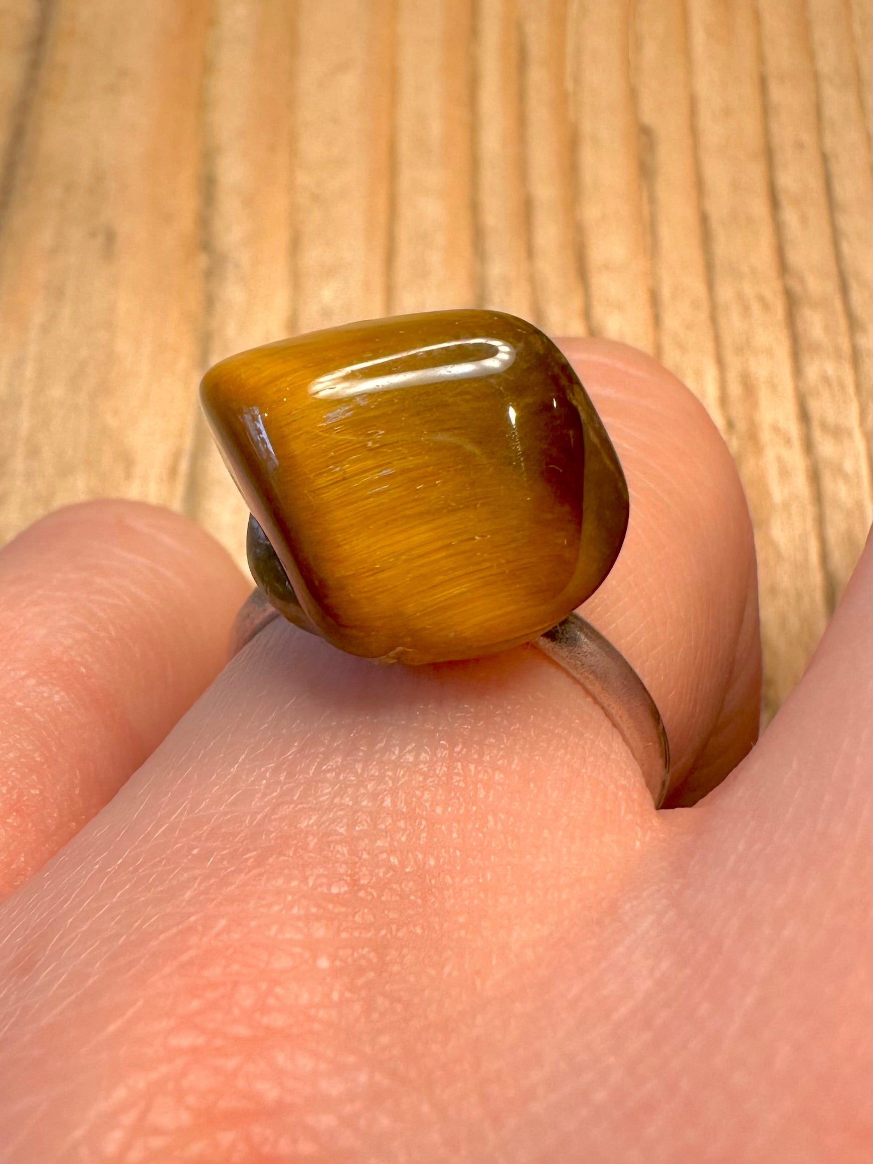 Vintage Tigers Eye Adjustable 925 Sterling Silver Size O1/2 Ring