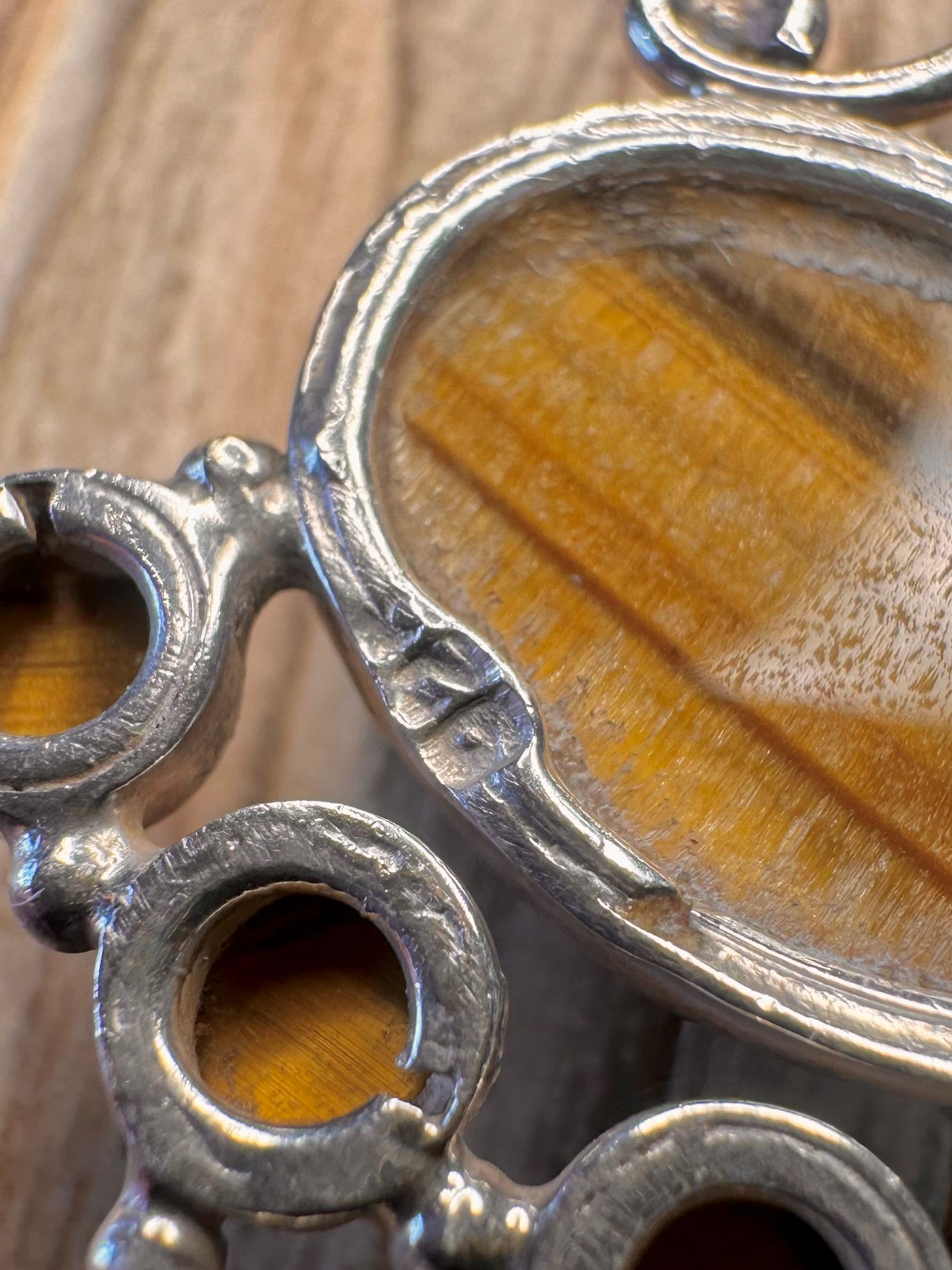 Vintage Tigers Eye Boho Style 925 Sterling Silver Pendant