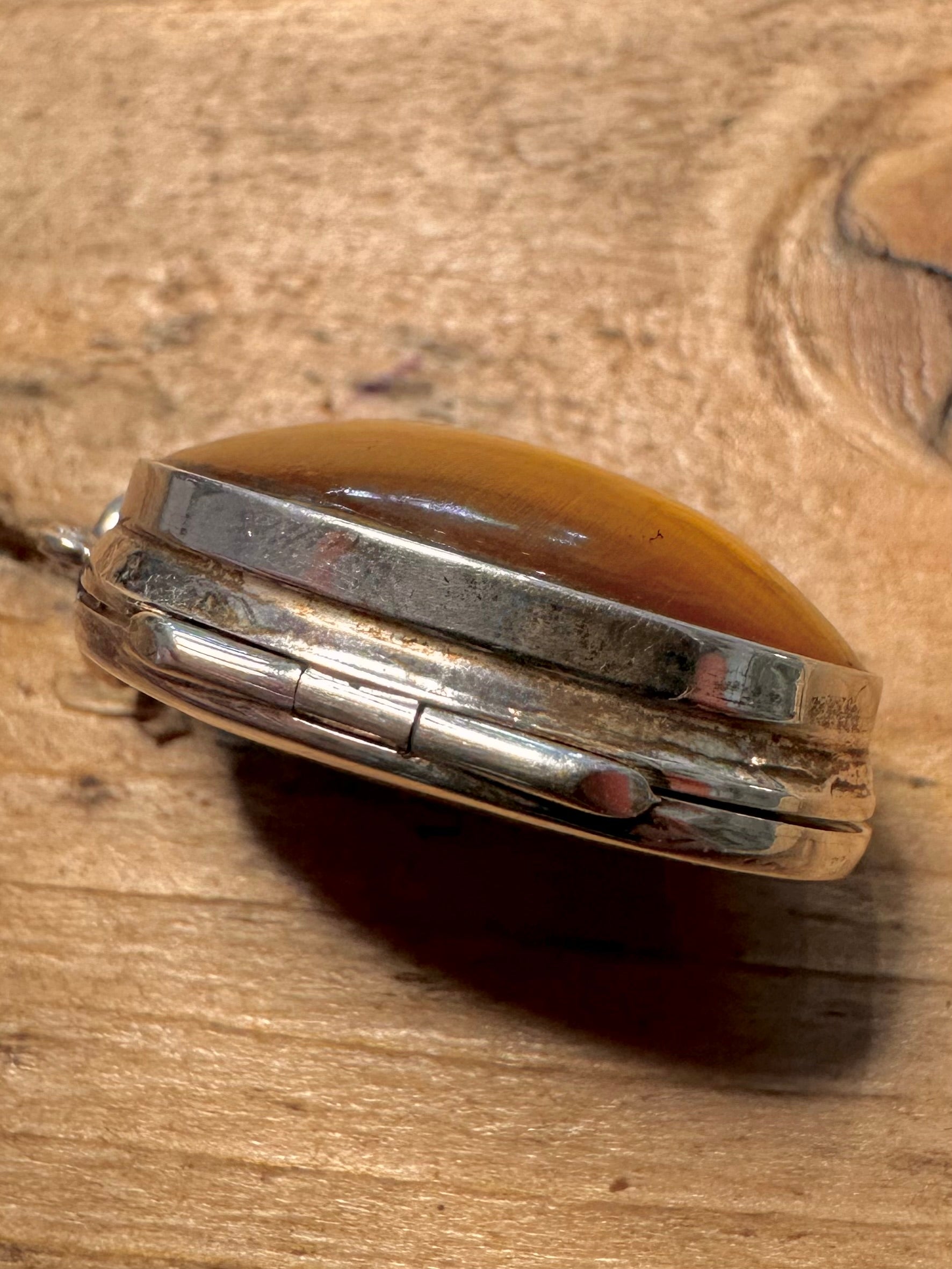 Vintage Tigers Eye Locket 925 Silver Pendant