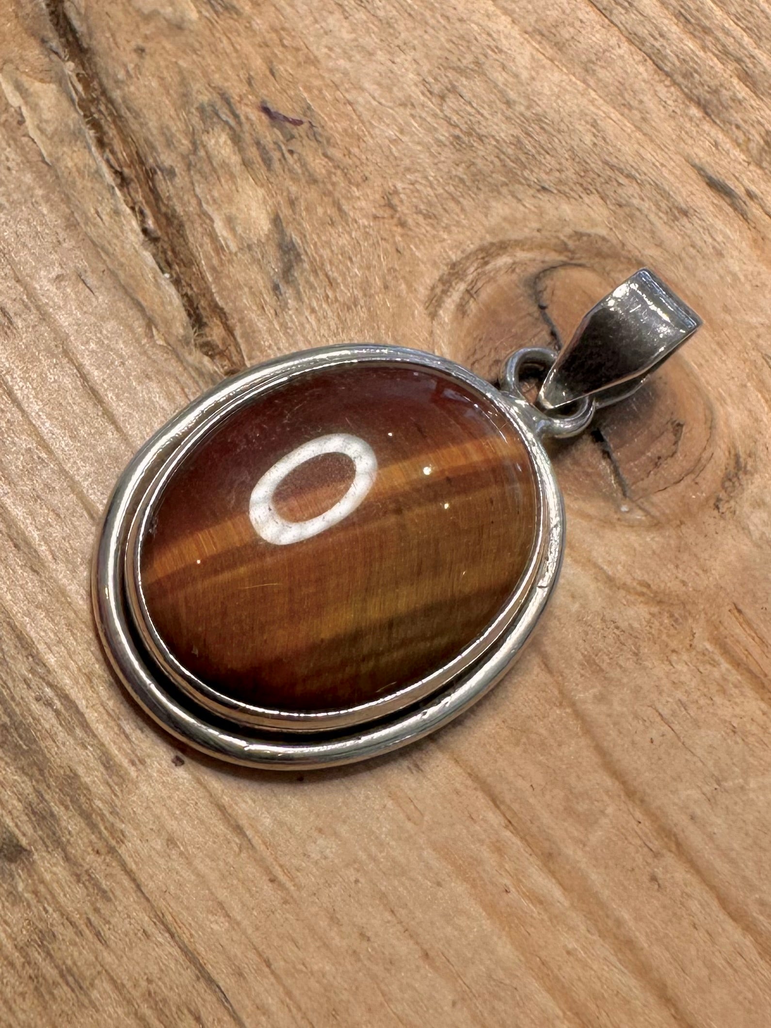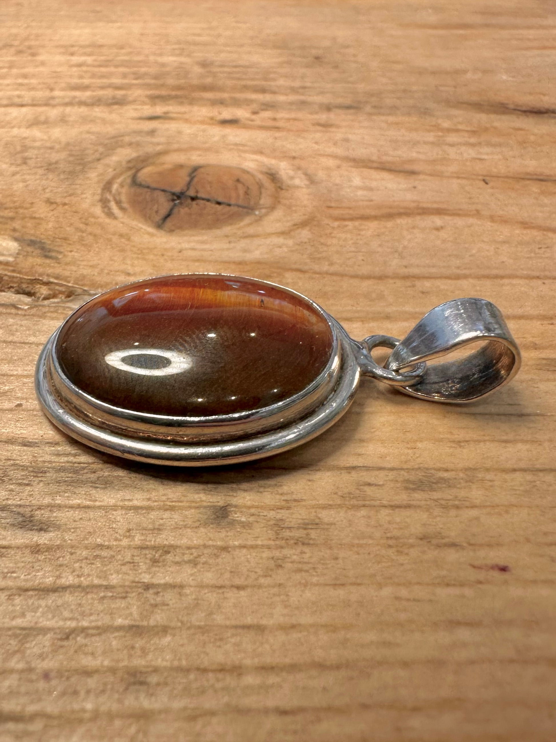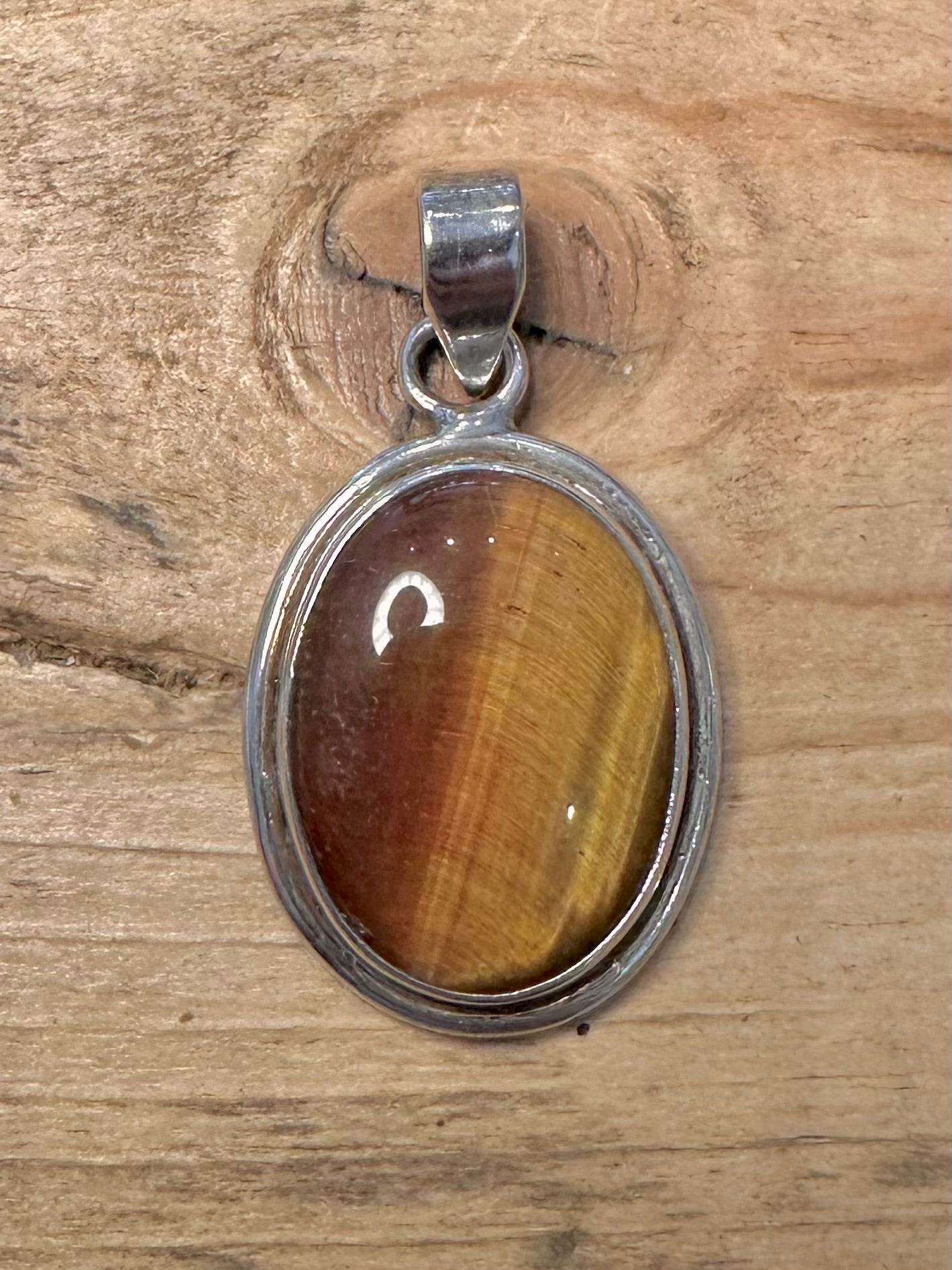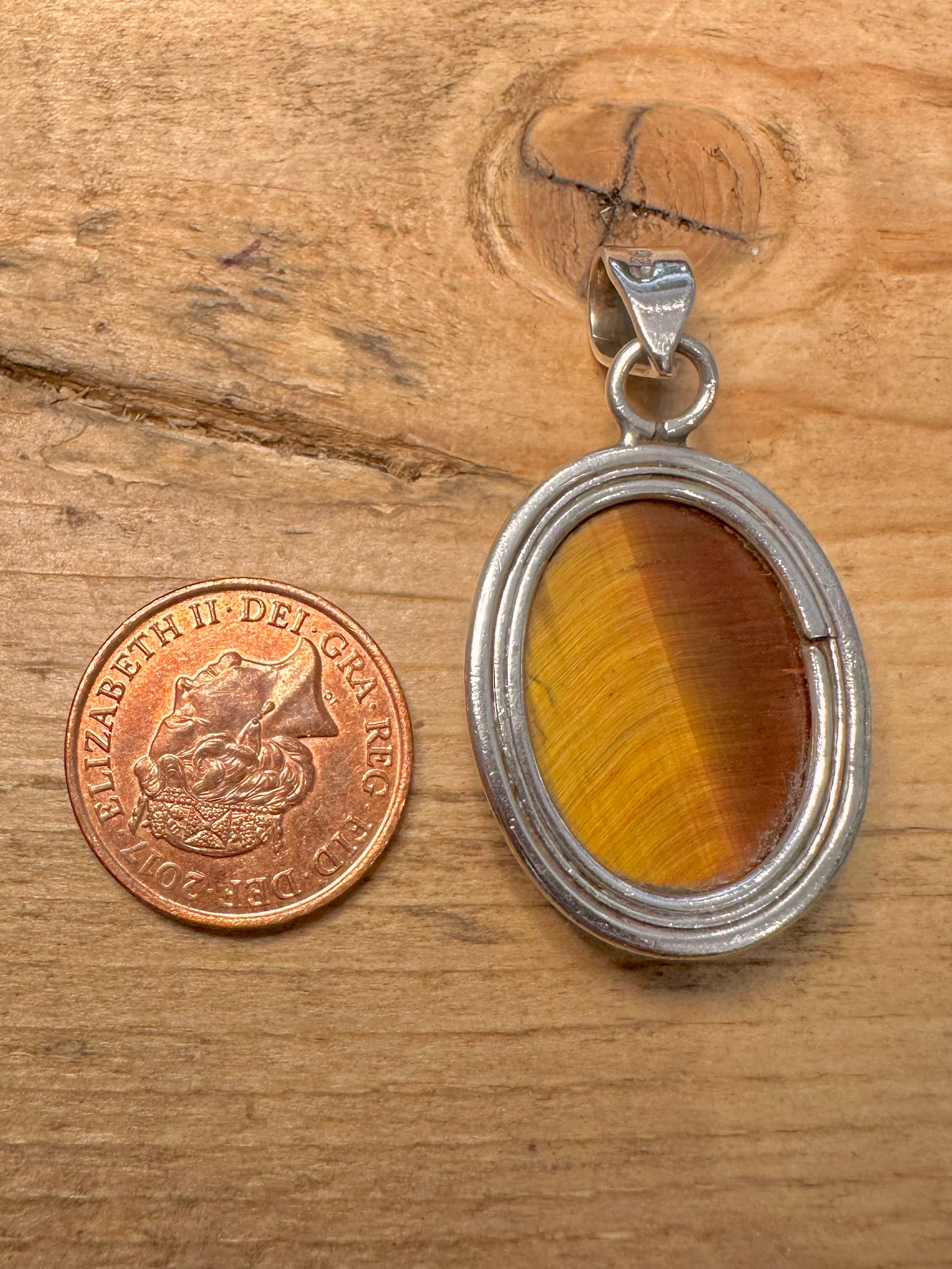 Vintage Tigers Eye Oval 925 Silver Pendant