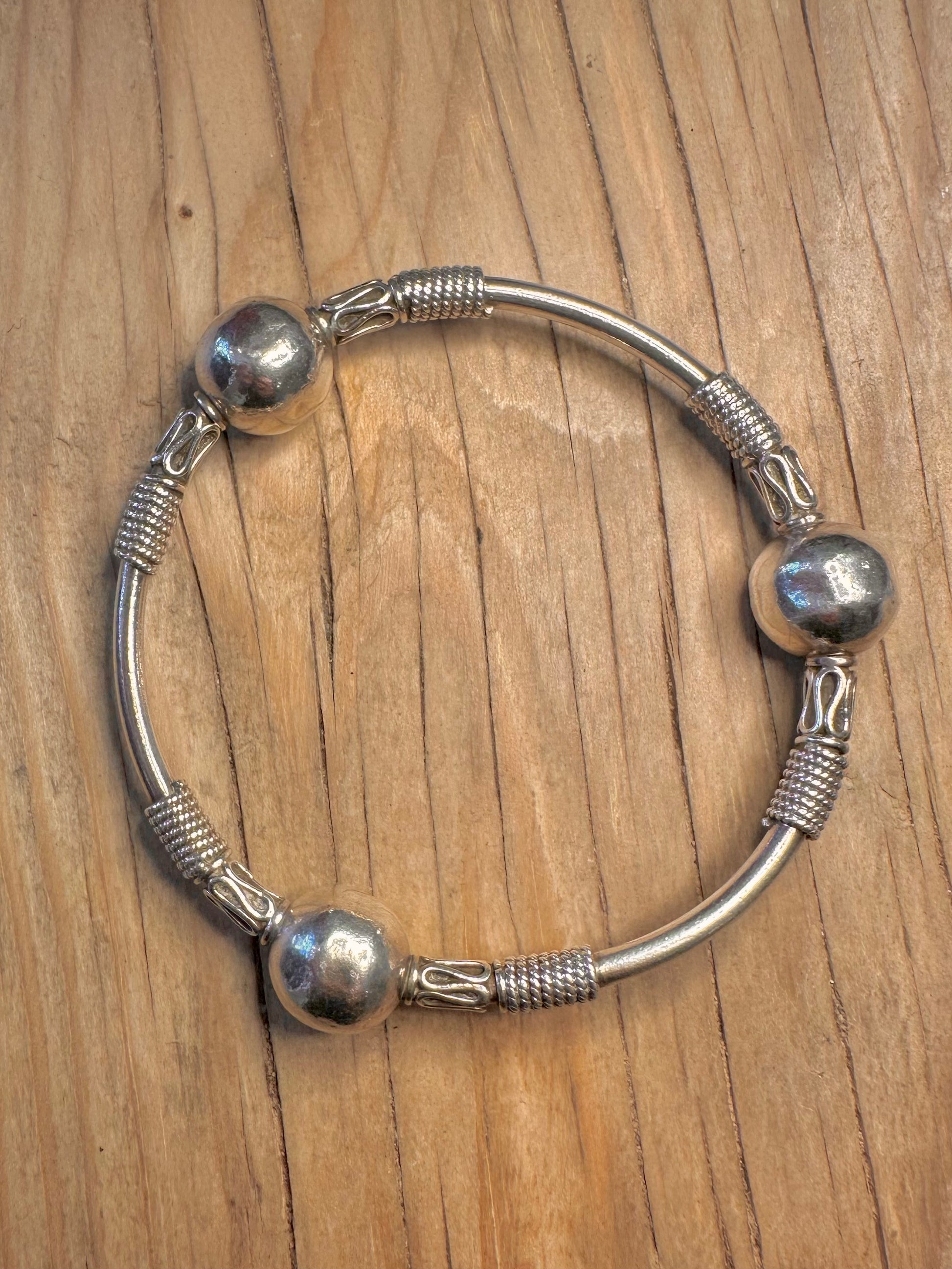 Vintage Tribal Ball 925 Sterling Silver Bangle