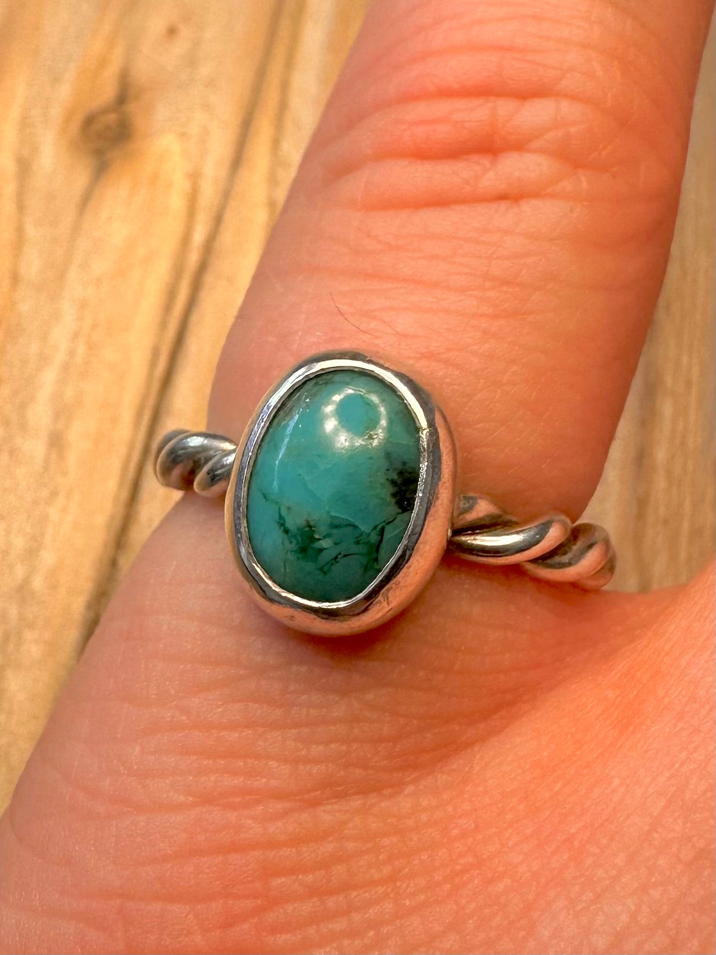 Vintage Turquoise Twisted 925 Silver Size K1/2 Ring