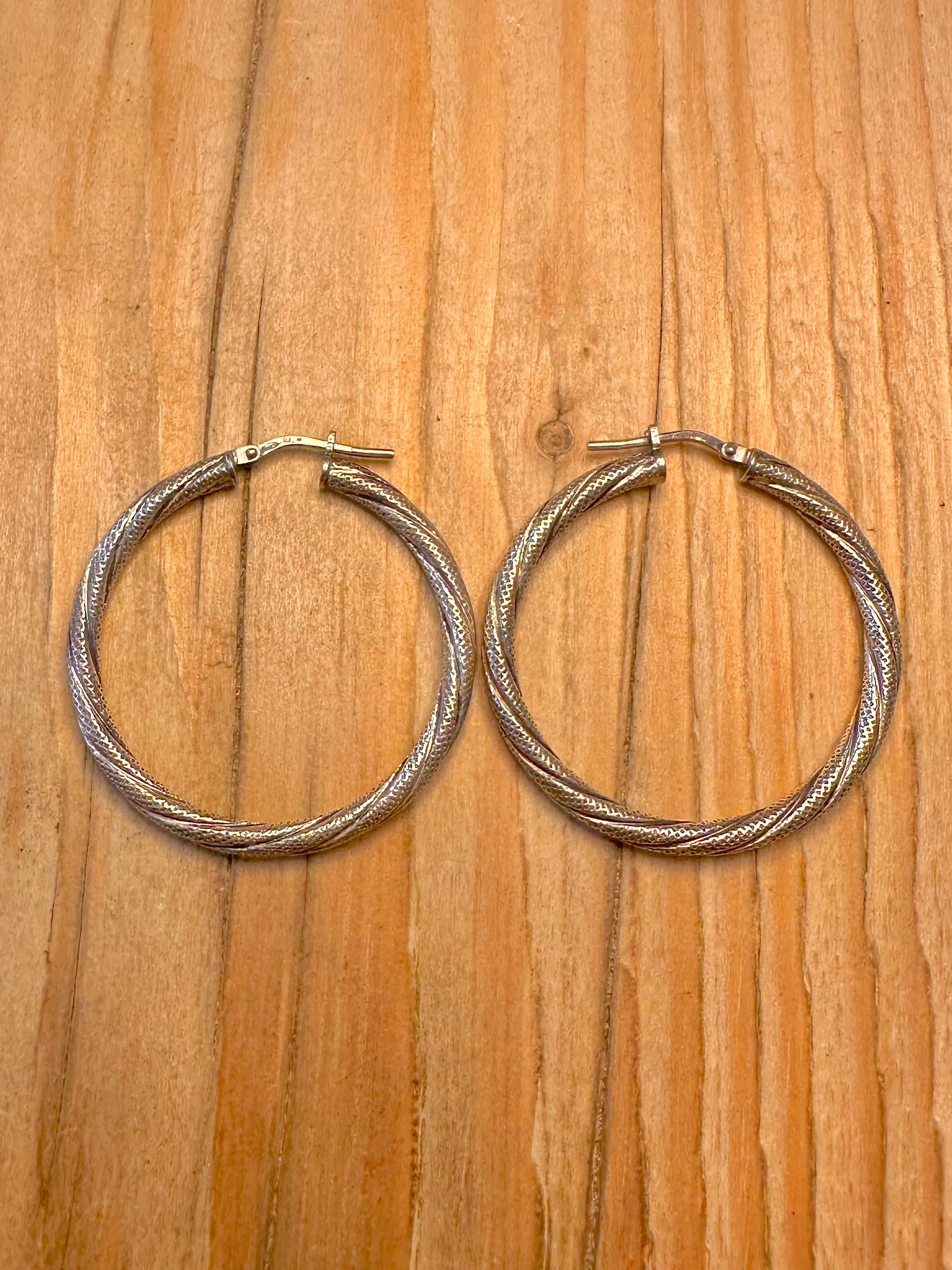 Vintage Twisted Textured Hoops 925 Sterling Silver Earrings