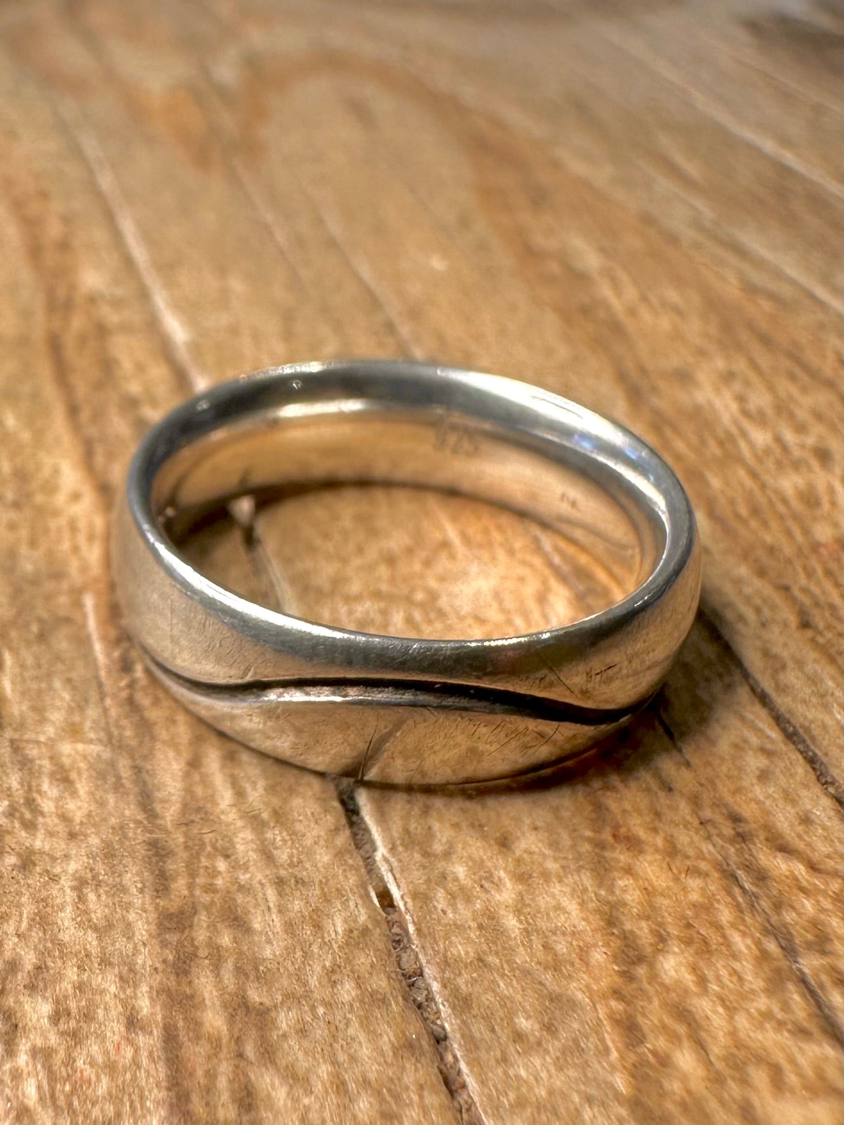 Vintage Wavy Line Band 925 Sterling Silver Size N Ring