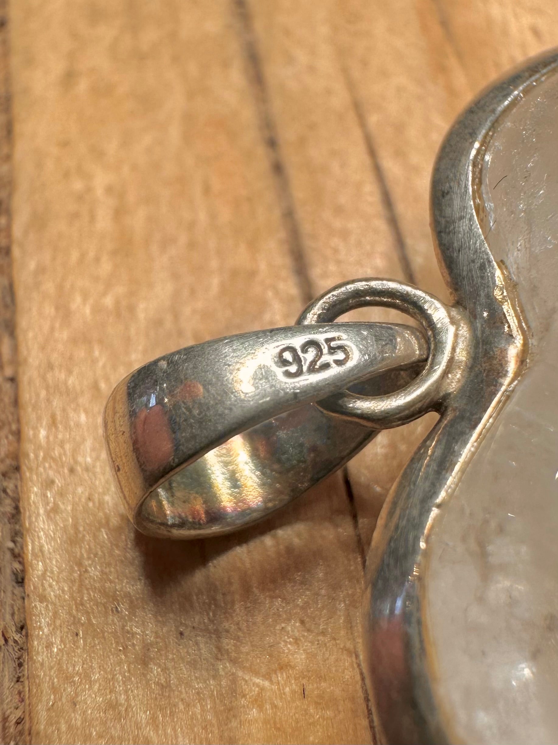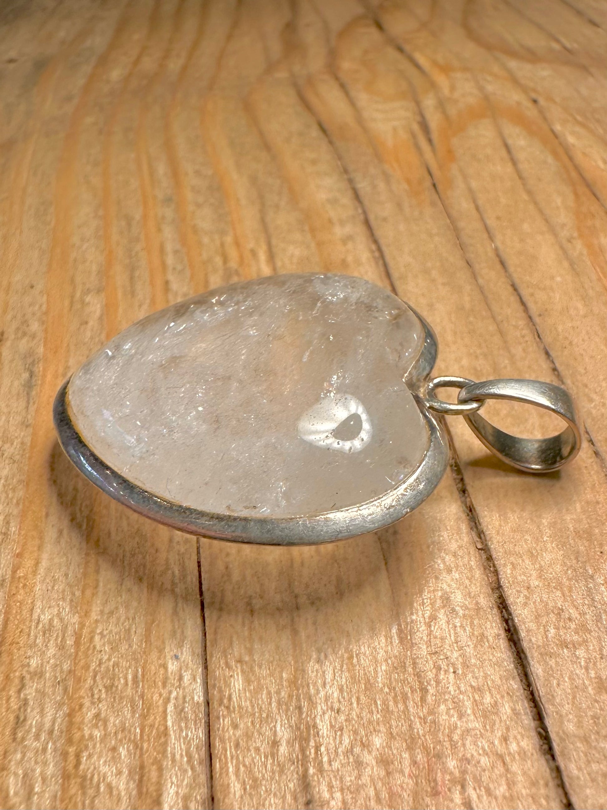 Vintage White Quarts Heart 925 Sterling Silver Pendant